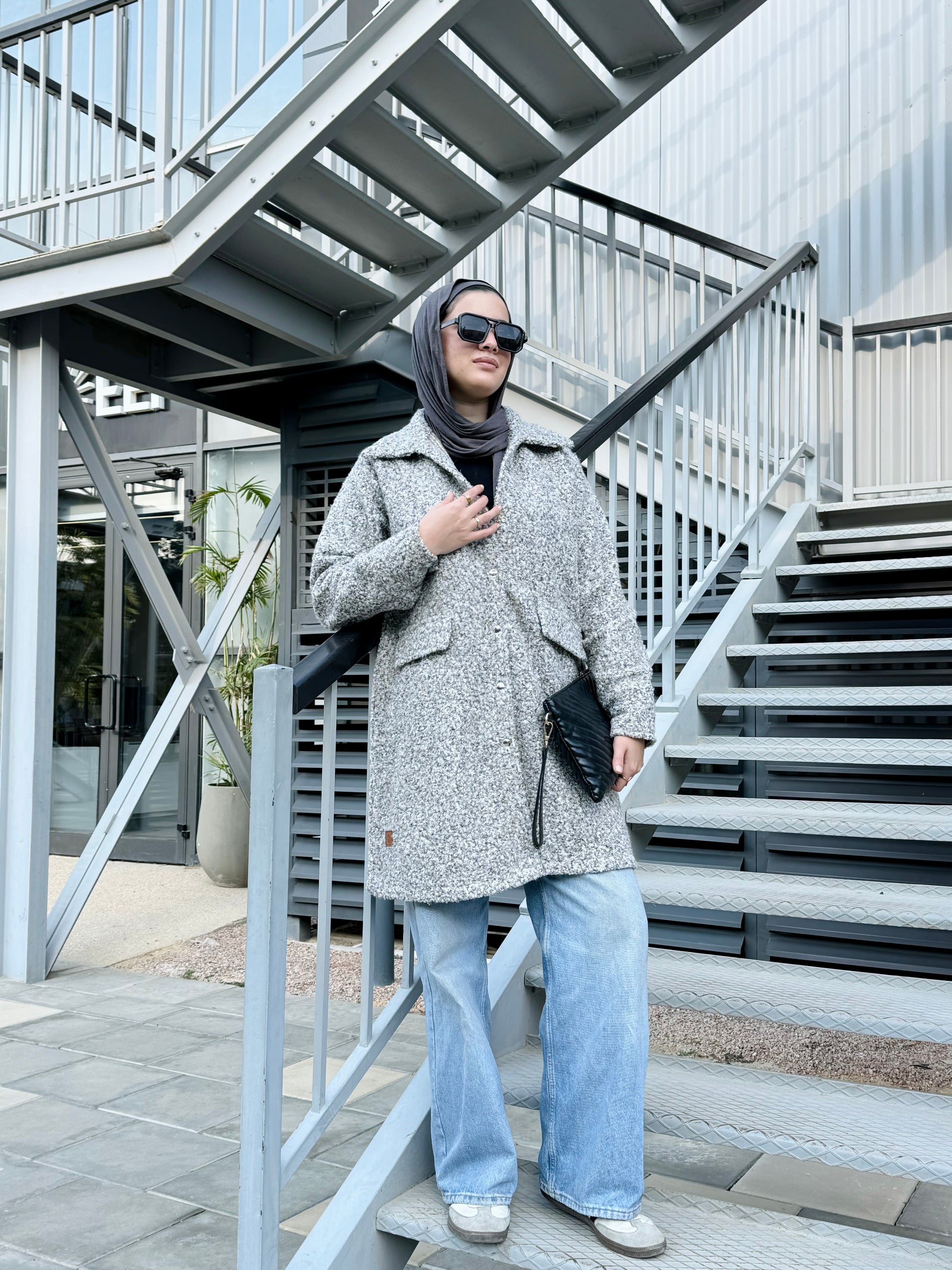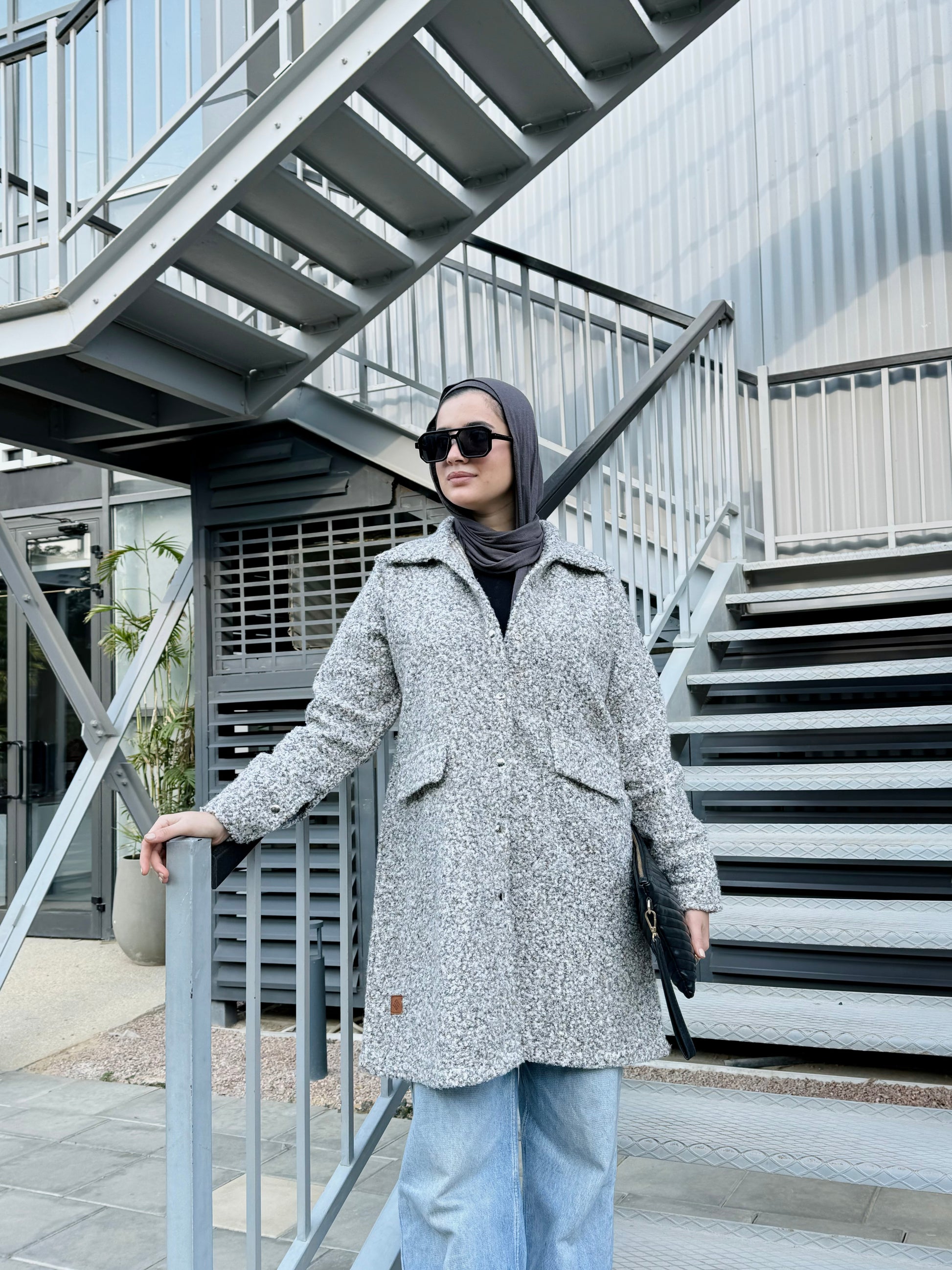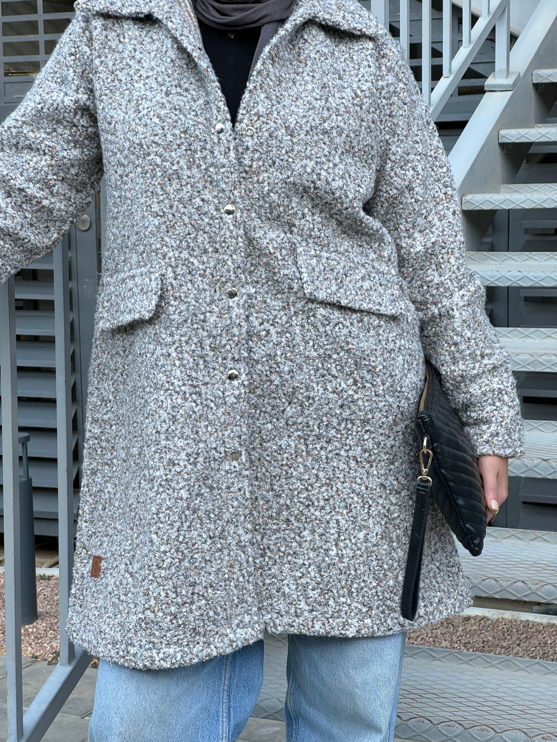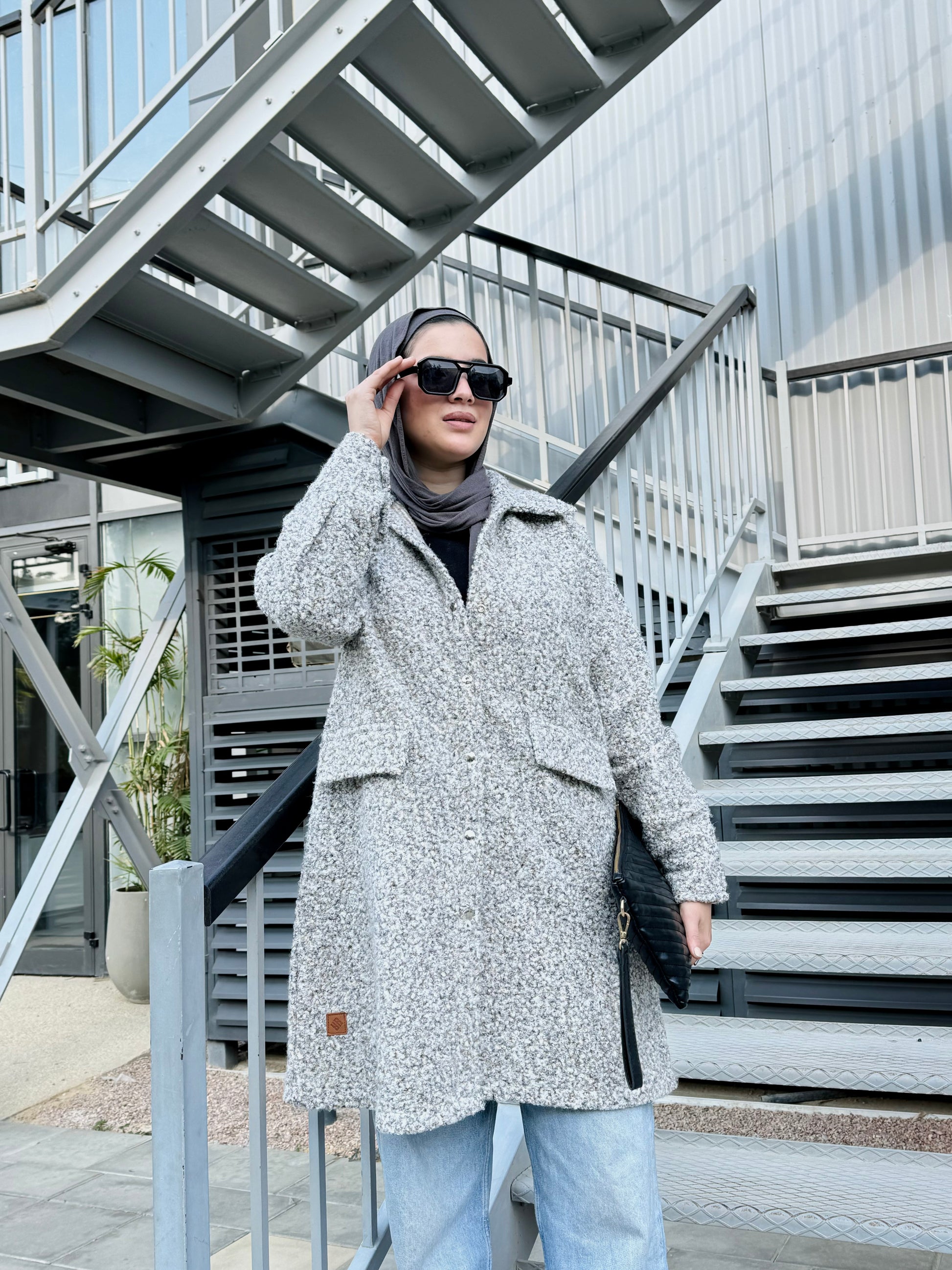 Introducing the Cloud Coat in Greish, a breathtaking new shade that captures the essence of calm and sophistication. Meticulously crafted, this coat represents the perfect blend of beige, grey, and off-white, resulting in a truly unique and versatile color that complements any wardrobe. The Greish color symbolizes a bridge between warmth and coolness, delivering a timeless appeal that suits every occasion.