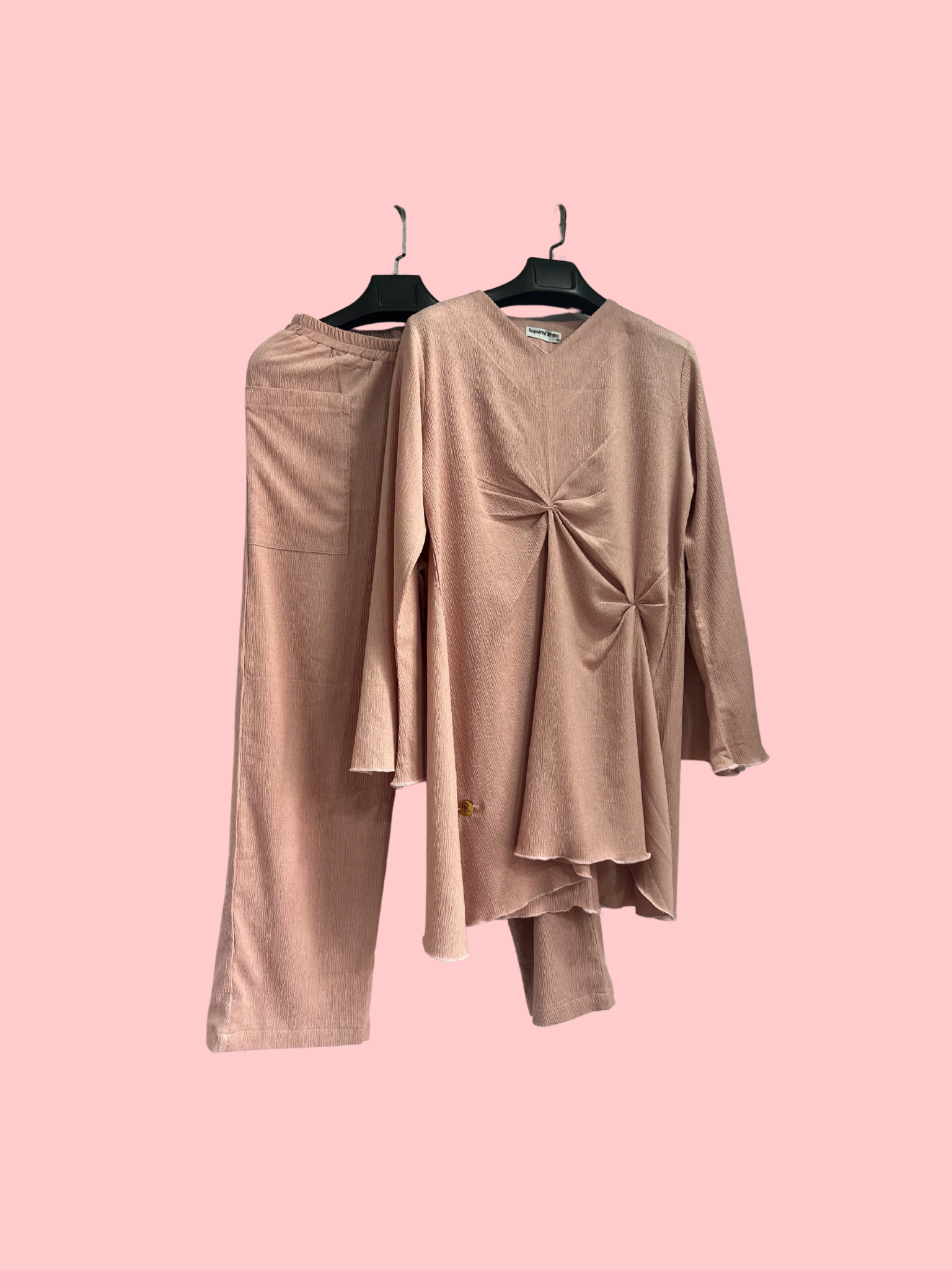 Meet the updated classic: the Double Knot Set now in Pink and Camel, crafted from our new Luxe Stretch fabric. Designed to flatter and move with you, this two-piece set features a double front knot detail that sculpts the silhouette, paired with a relaxed yet structured fit for modern ease. The buttery-soft texture and subtle sheen elevate it from lounge to luxe—perfect for dressing up or winding down in style.