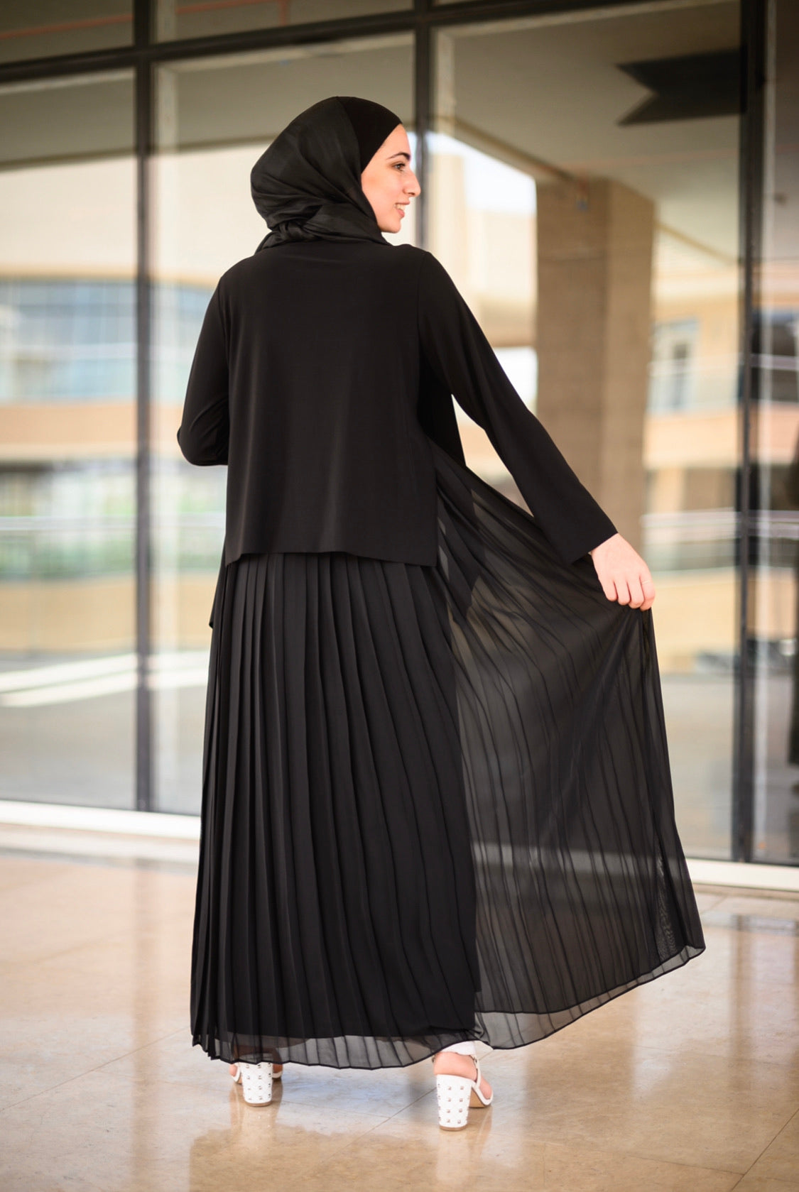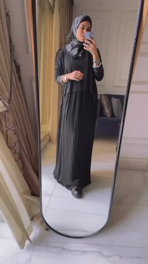 Style your look with this beautiful stunning piece composed of a flowy upper jersee part and a chic lower plisse chiffon