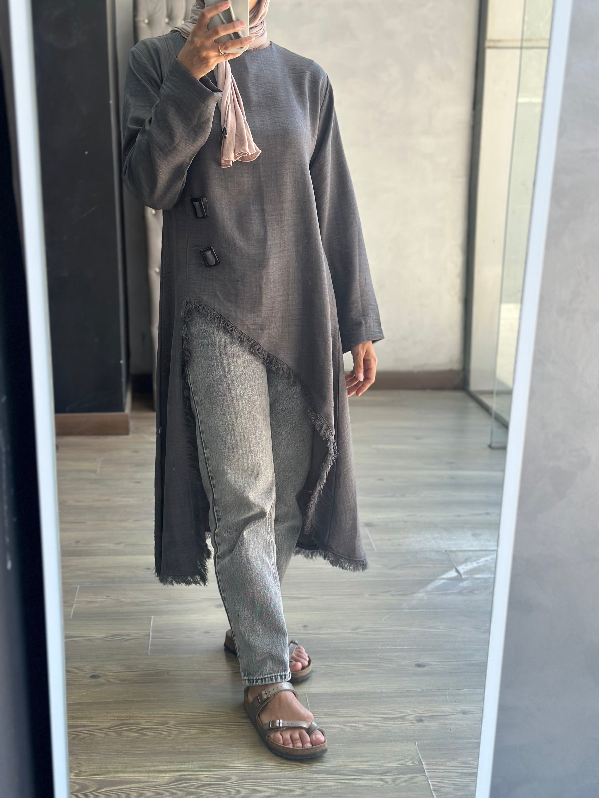 Elevate your everyday style with this effortlessly elegant linen top. Designed with a subtle front-side slit, soft fringed edges, and two decorative belts that add a flattering silhouette, this piece blends modesty with modern flair. Crafted from breathable linen and available in a range of earthy and vibrant tones, it’s the perfect go-to for light layering, timeless comfort, and versatile styling.