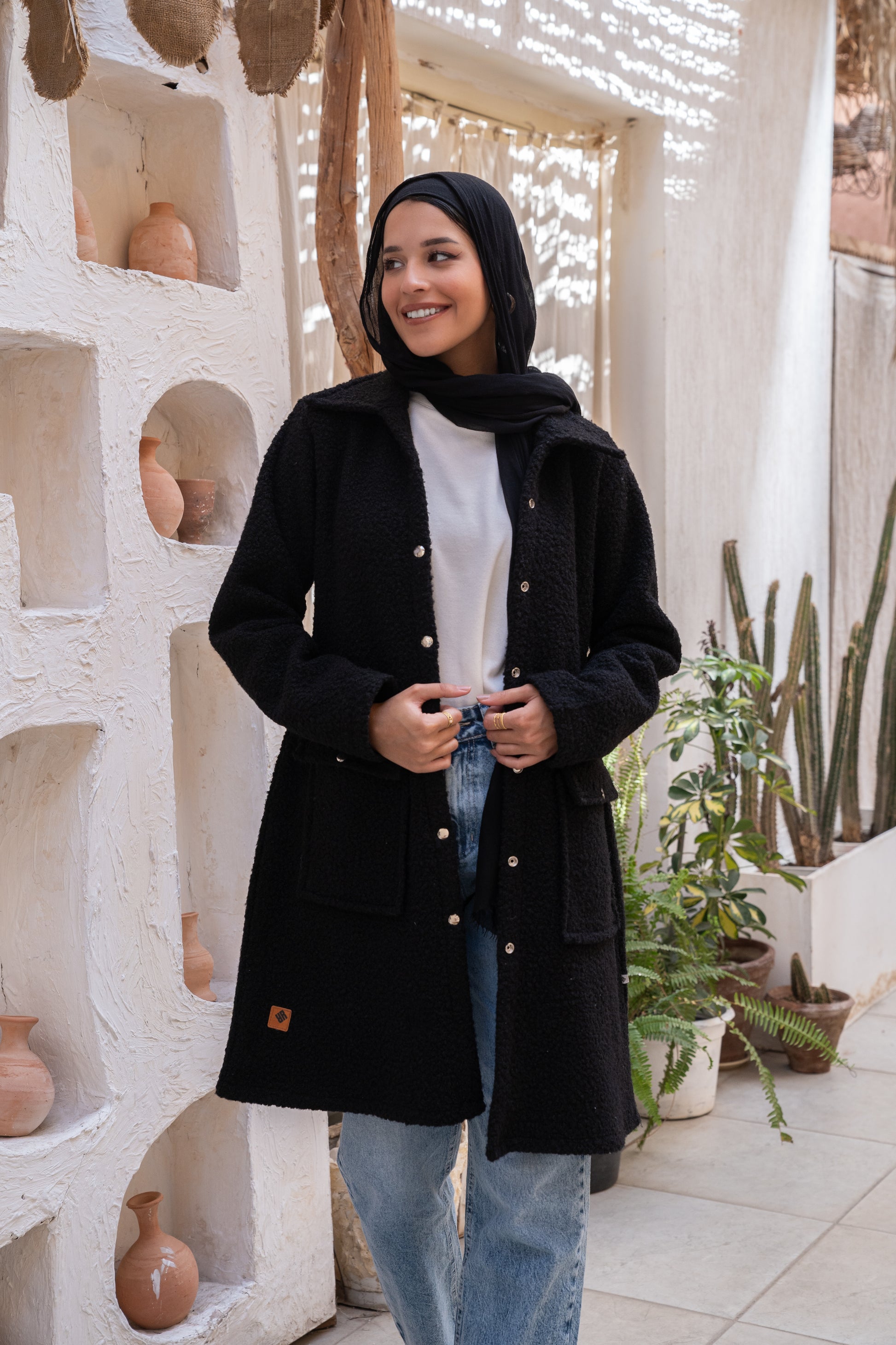 Step into cozy comfort with our Fleece coat! This black and beige beauty is the ultimate in warmth and style. With its soft fleece material and convenient pockets, this coat is perfect for chilly days and nights. Don't miss out on the opportunity to stay snug and chic this season - grab your Fleece coat today!