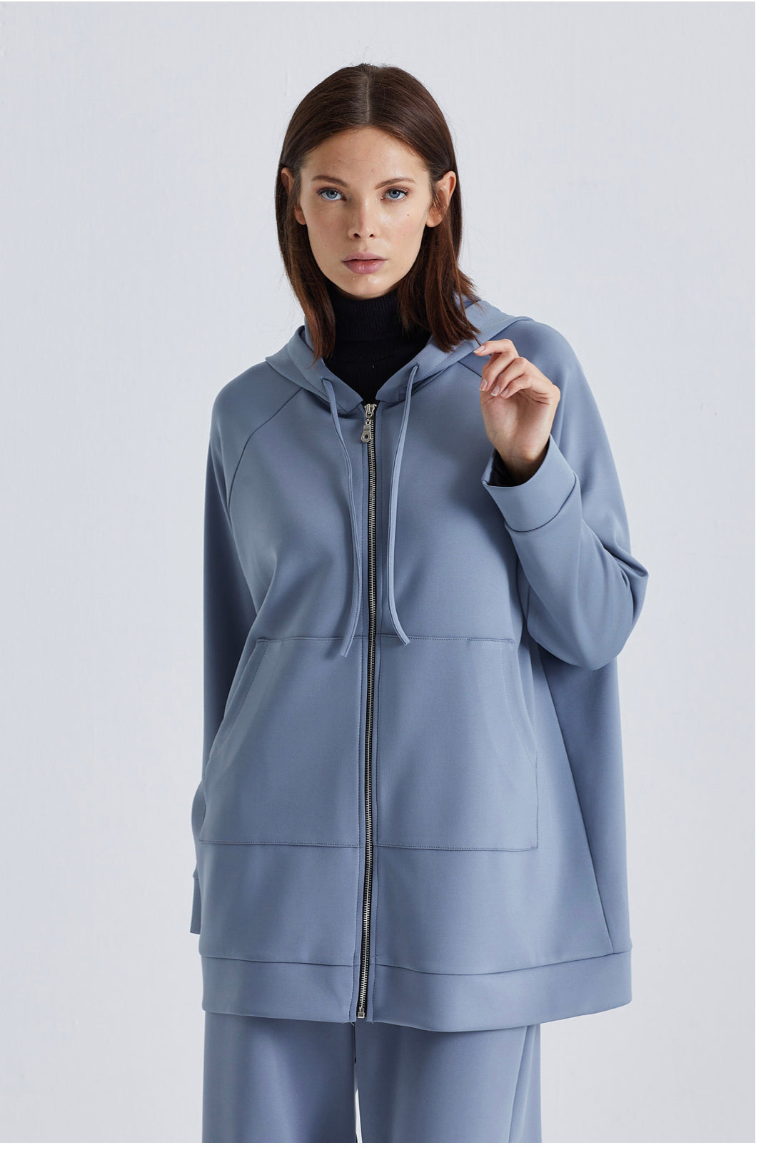 Zipper sweatshirt with Hoodie 78cm long