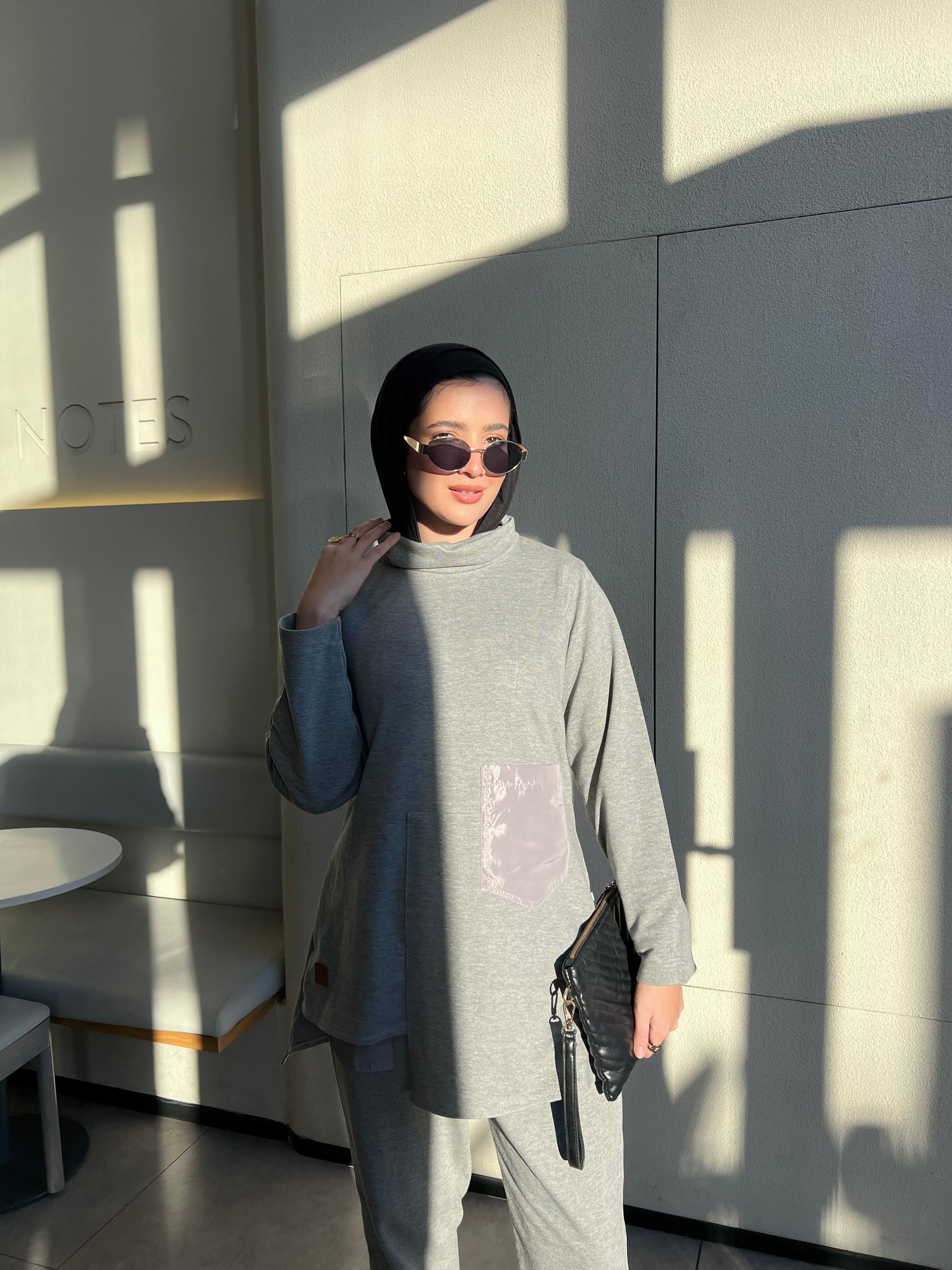 Dive in sportswear excellence, designed meticulously for the modern woman who doesn’t compromise on style or functionality. Each set features a high-neck top that redefines elegance with its waterproof pocket – a nod to practicality for the on-the-go individual. With a bold, squared cut that varies in length, this ensemble offers a contemporary silhouette that is both flattering and unique. Paired with sleek joggers, each set is available in three carefully selected colors: the serene Off White, the refreshing Mint, and the classic Black with a vibrant blue accent. The AquaZenith Ensemble brings together comfort, function, and fashion in perfect harmony.