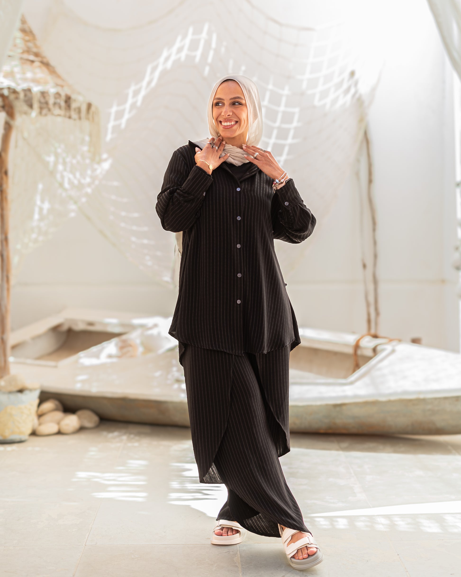 This set is not just an outfit; it's a statement of modesty blended with the relaxed vibe of beachwear. Ideal for those sunny days and warm nights, the Beach Modest Striped Set ensures you look and feel fabulous, keeping modesty at the forefront of your summer wardrobe.