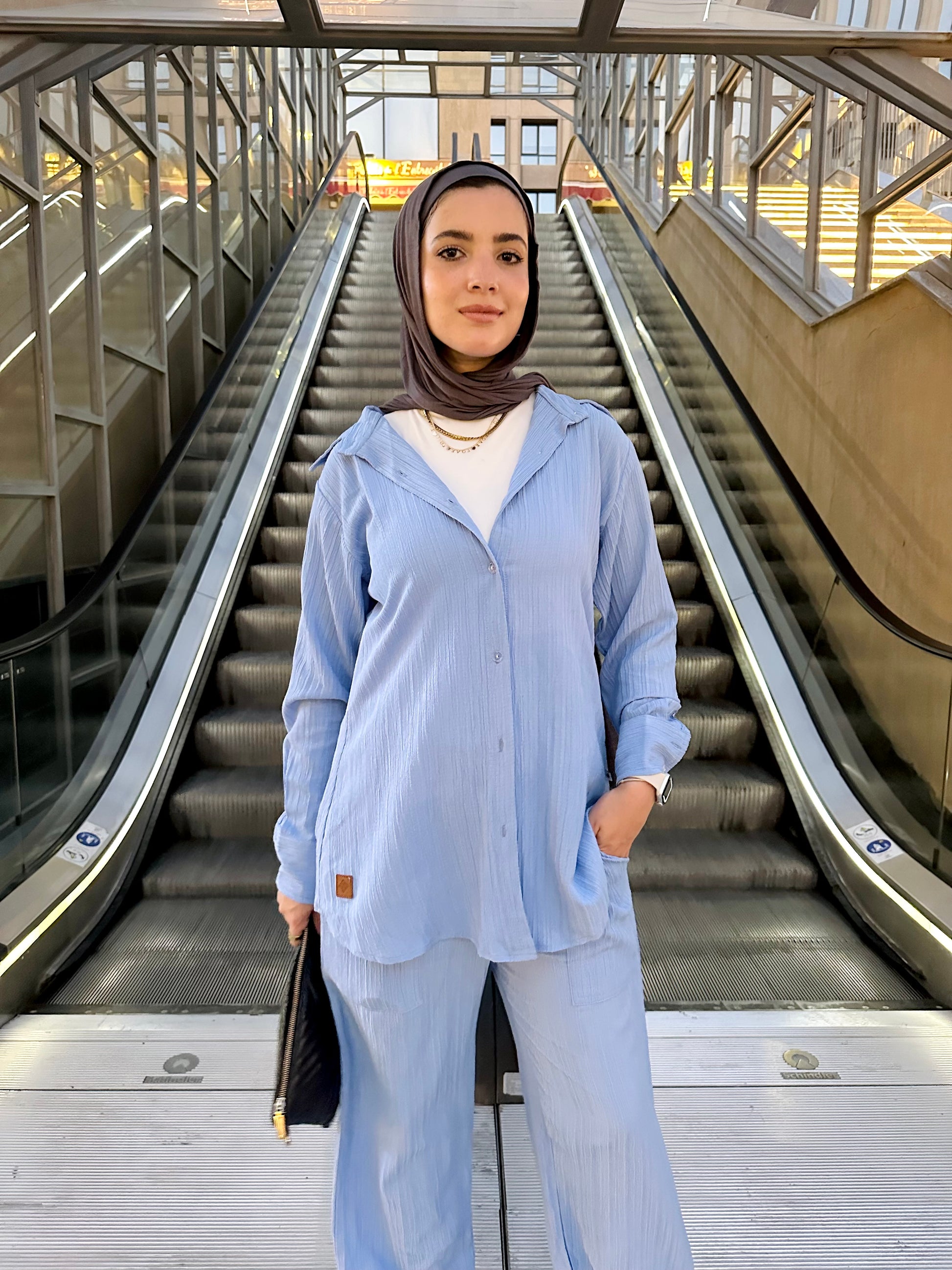 Dive into the season of renewal with our Textured baby Blue Shirt Set, a masterpiece that combines modest elegance with the breezy lightness of summer. Crafted from sublime fabric with a unique texture, this set promises to be the centerpiece of your festive and everyday attire.