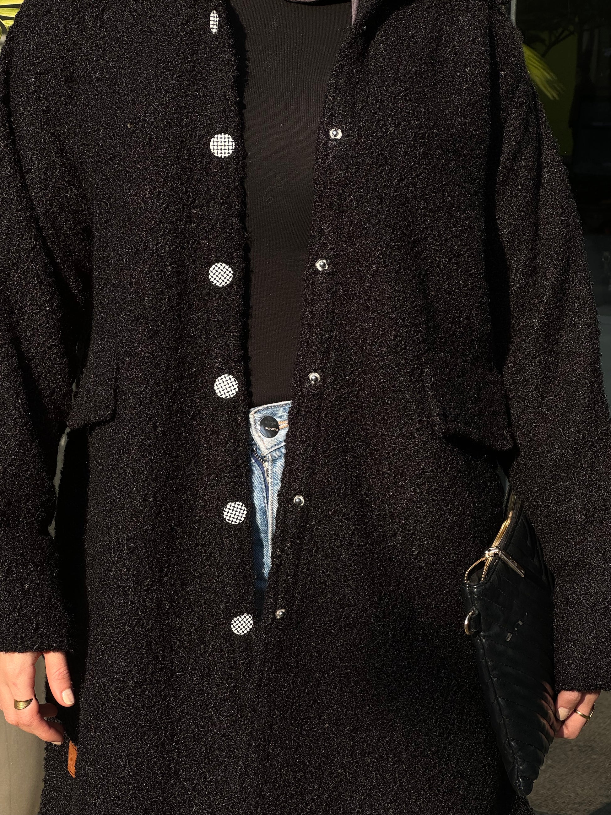 With the Cloud Coat in Black, experience a fusion of classic and comfort. We believe that every piece should not only look good but also feel good. Our attention to detail and dedication to quality ensure that this coat will remain a beloved part of your outerwear collection for seasons to come