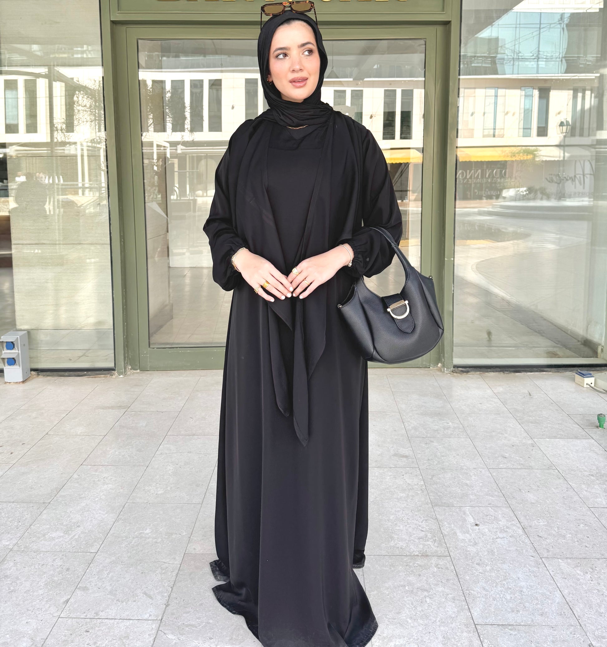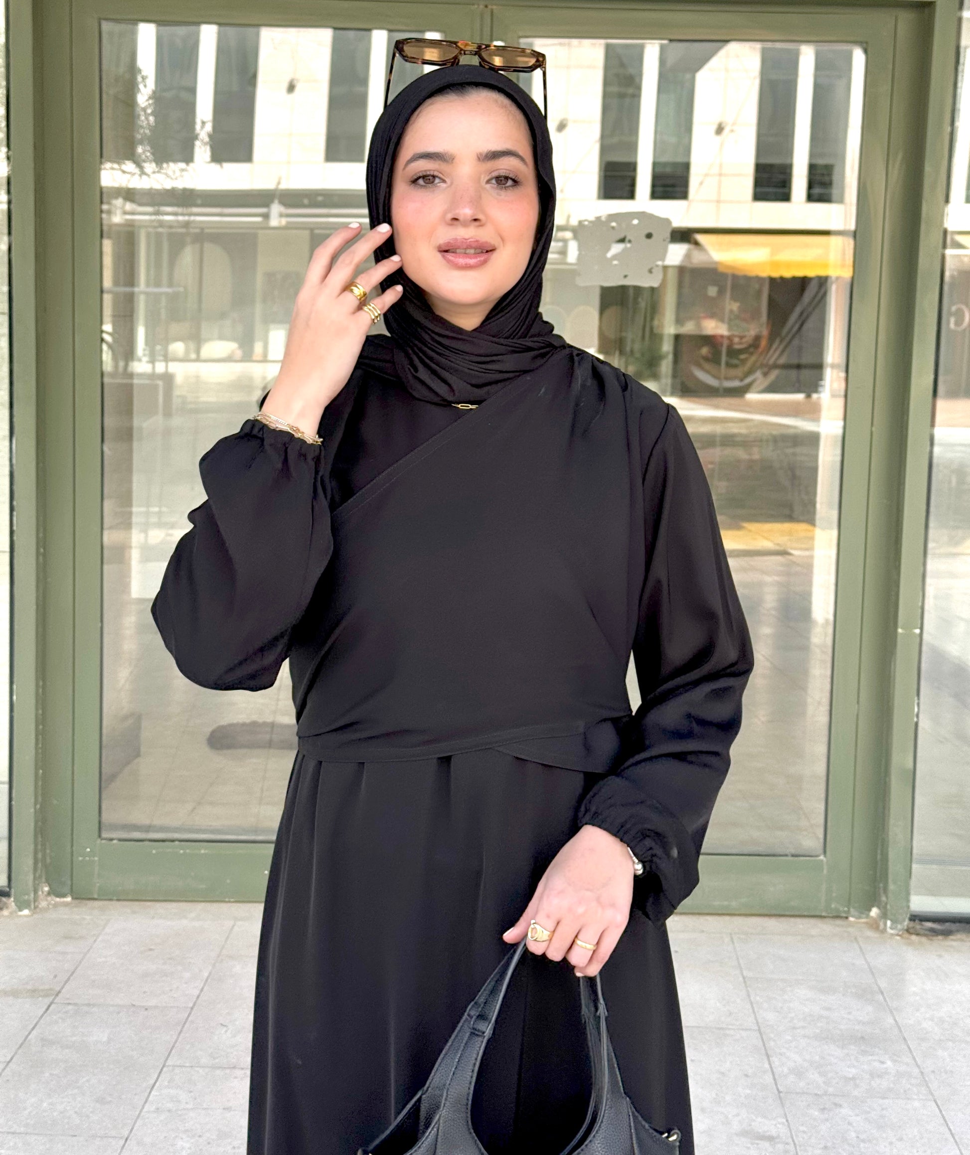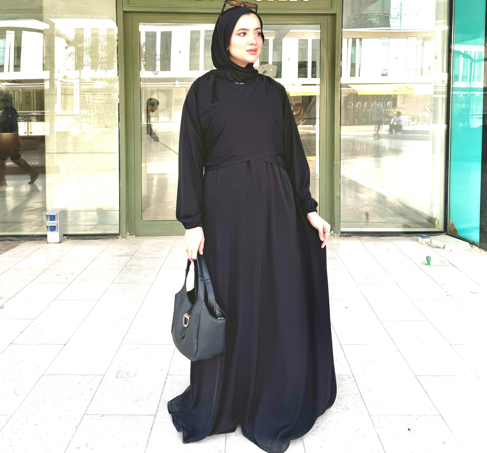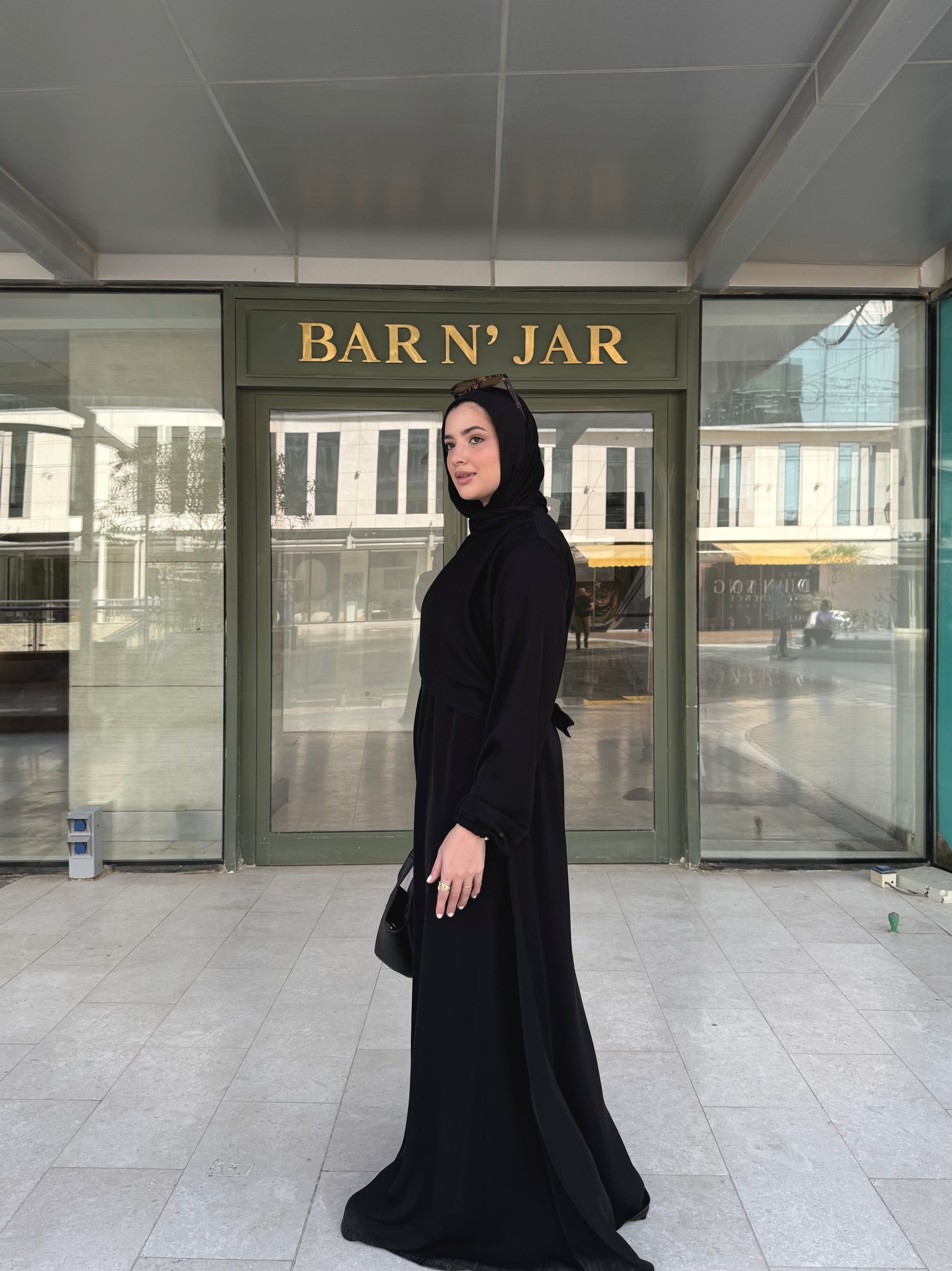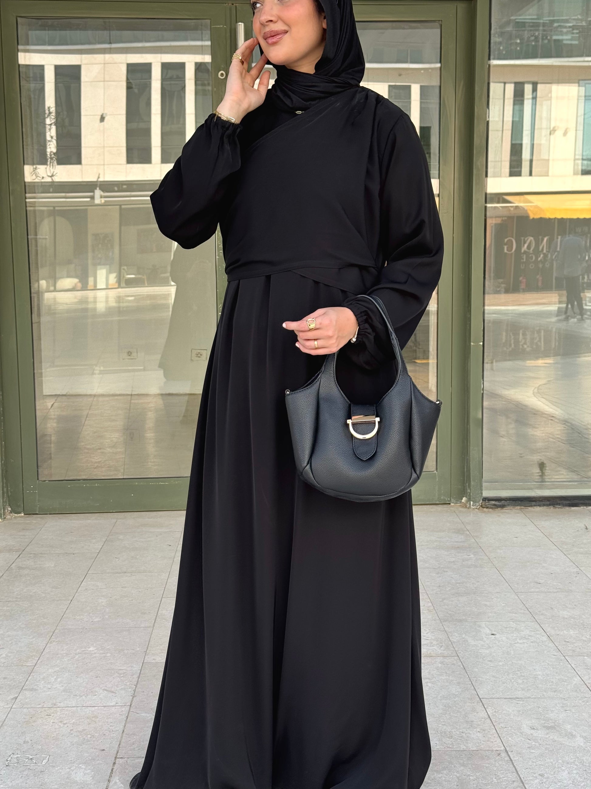 Where structure meets softness. The double-breasted front with a delicate back tie, creating a flattering, cinched silhouette. Ideal for those who seek a polished, contemporary expression of modesty.
