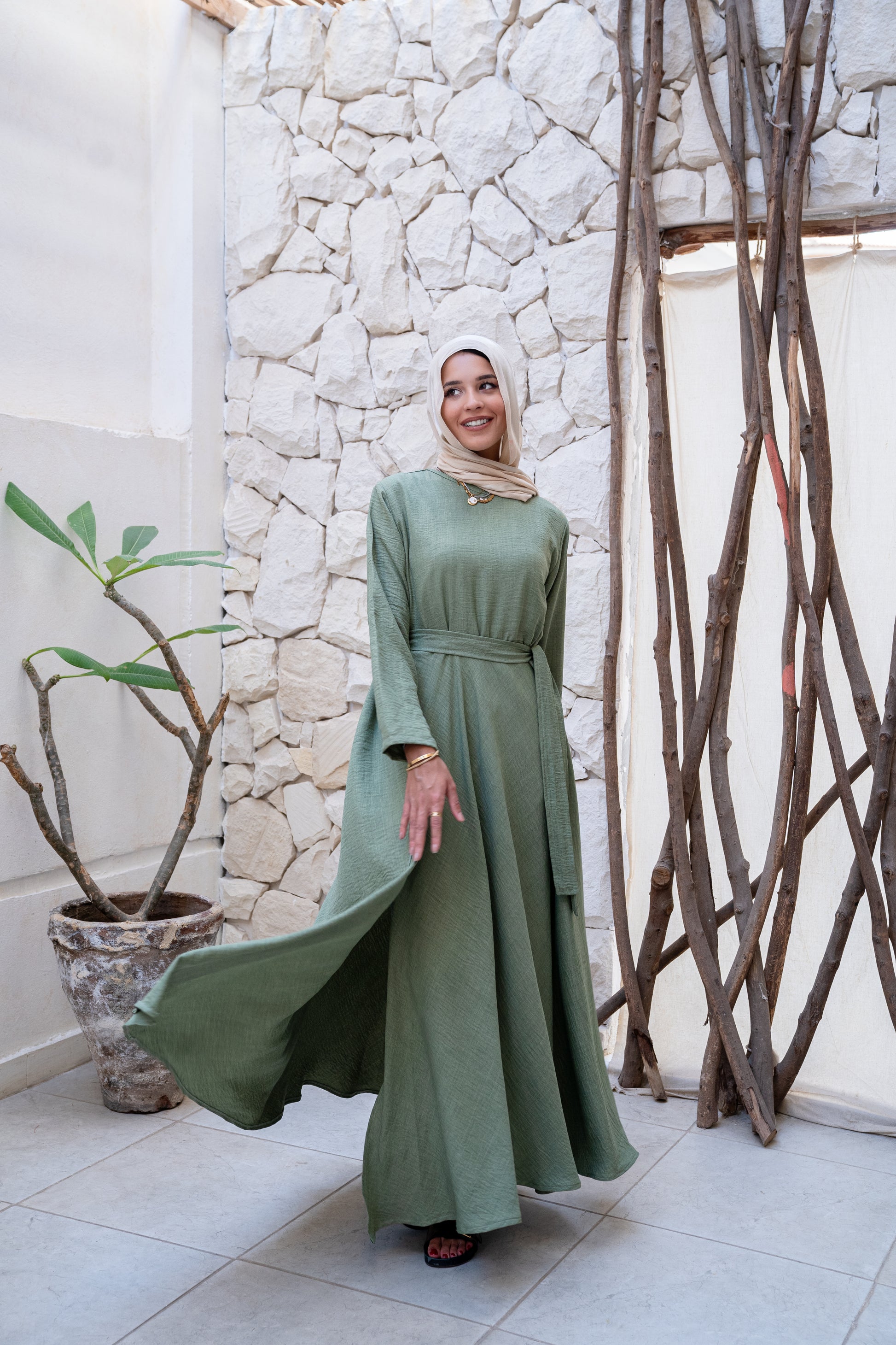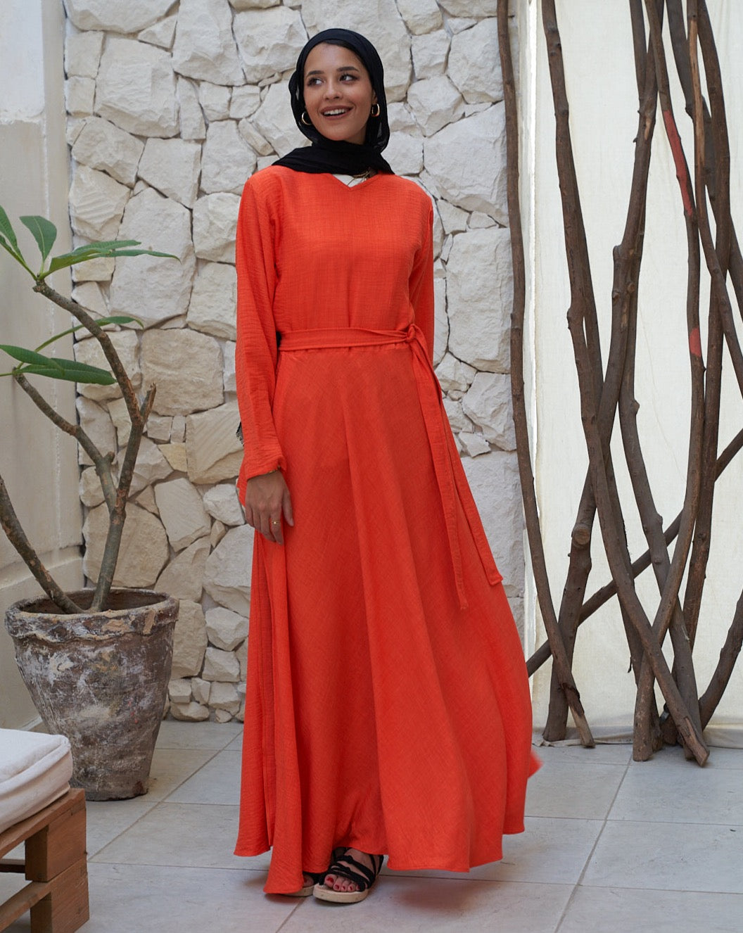 Designed to captivate, the dress boasts a dramatically flowy and wide silhouette from the waist down. This distinctive design not only ensures unparalleled comfort and freedom of movement but also creates a stunning visual effect, as the dress seems to dance with each step you take.