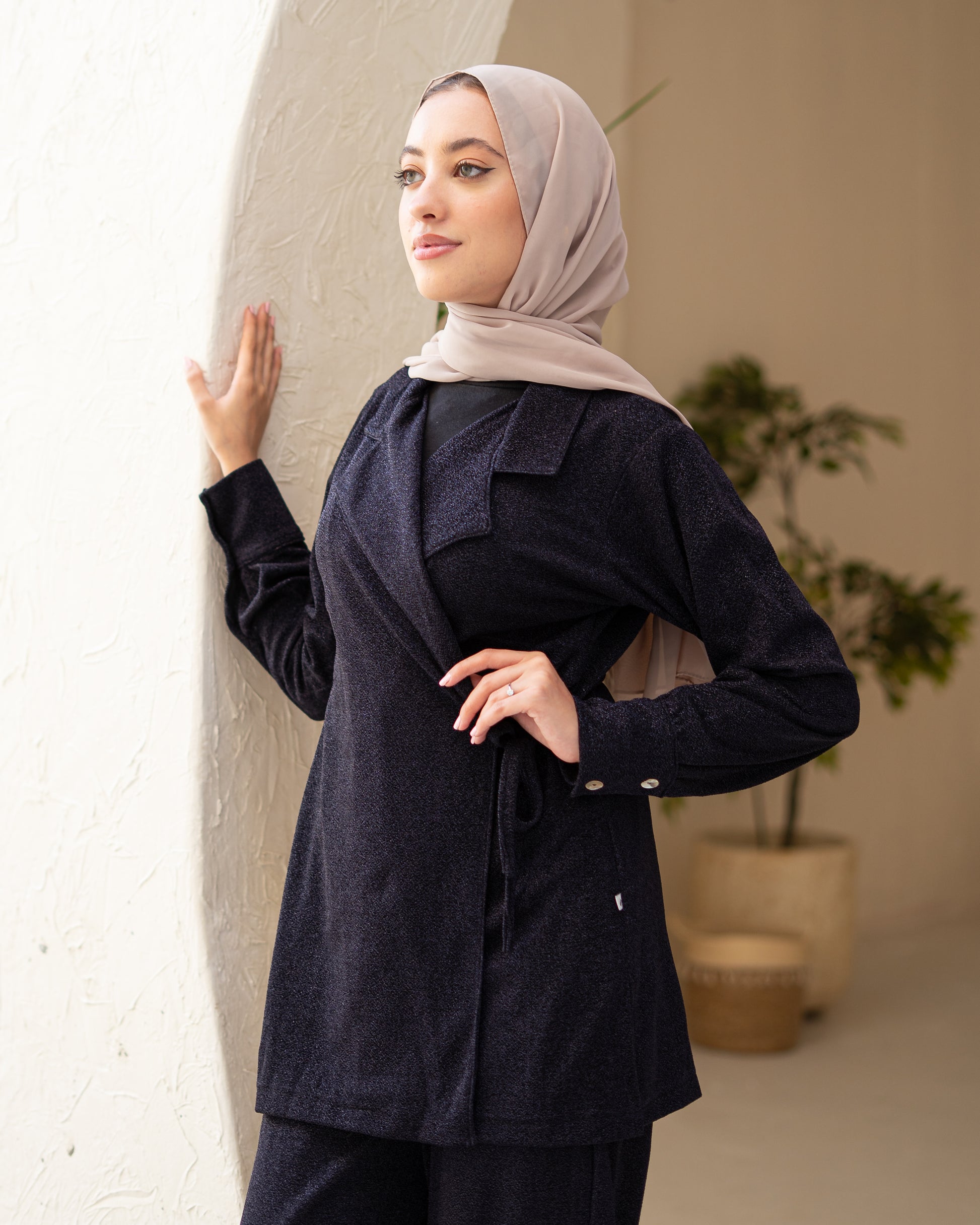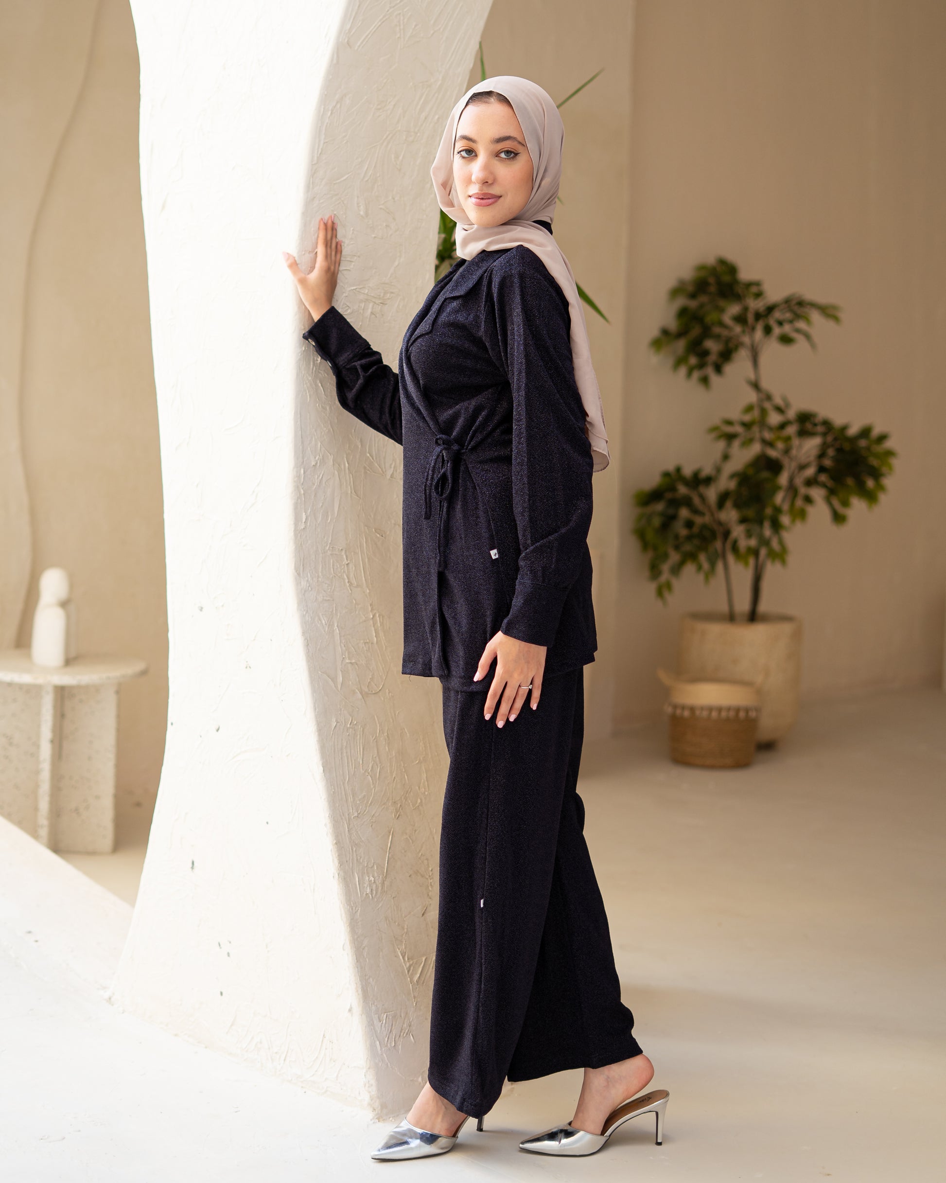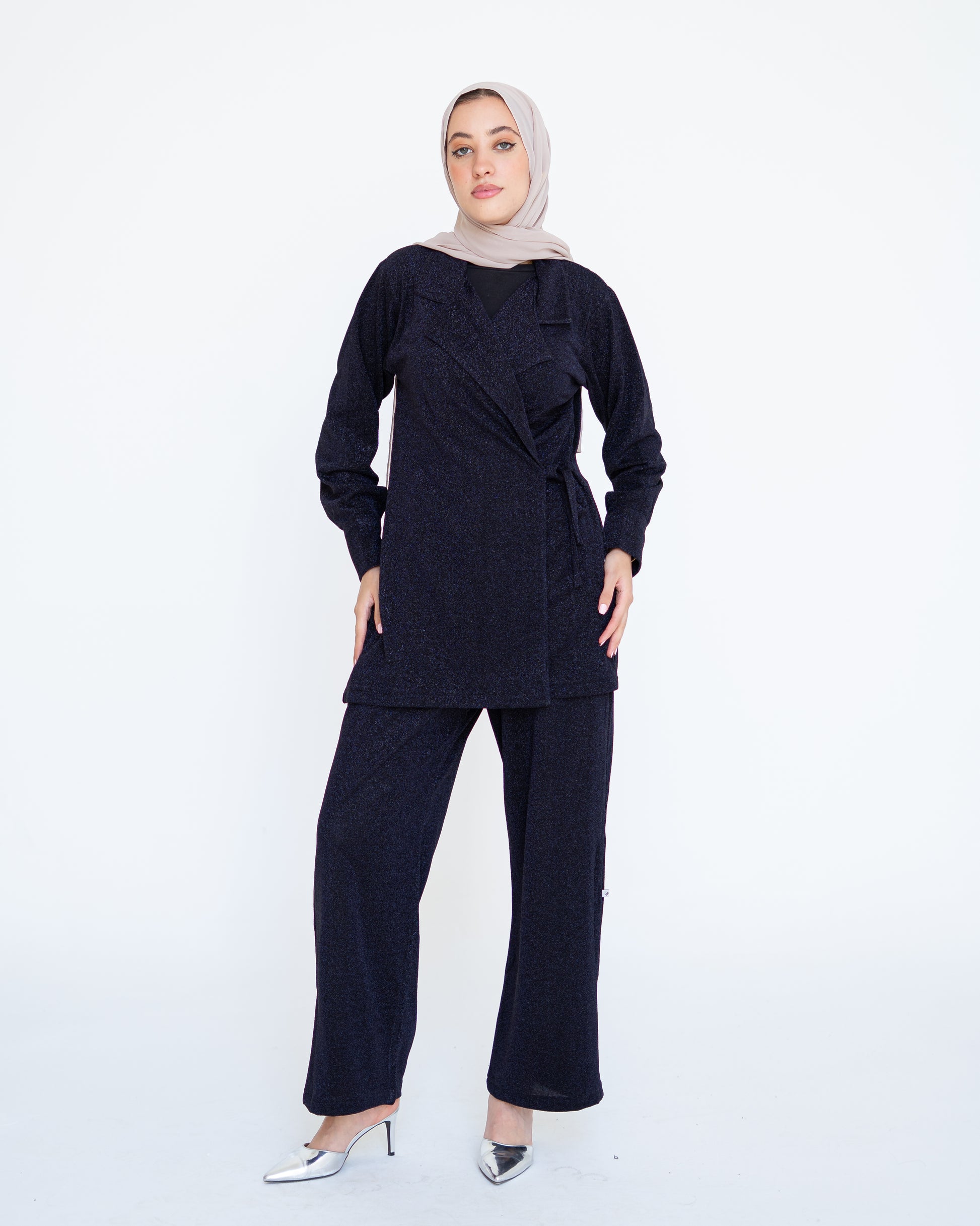 Designed for comfort without sacrificing elegance, this set offers a smooth stretch fit with a subtle sheen — perfect for long wear and graceful motion.