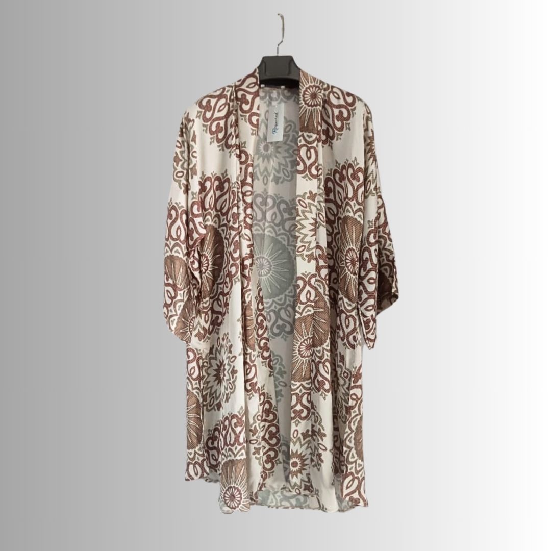 Show your stand out style with this lovely oriental kimono. The design has a beautiful vibrant print in beautiful vibrant colours, which will complement any wardrobe