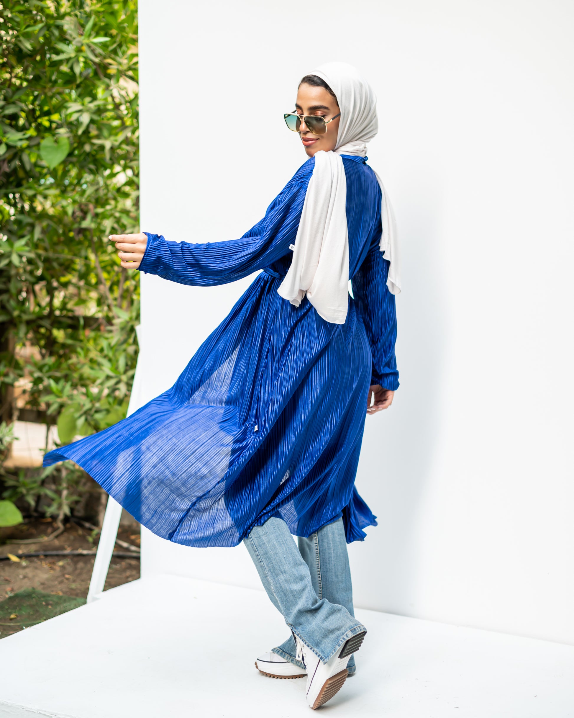 Pleated Cardigan in Royal Blue