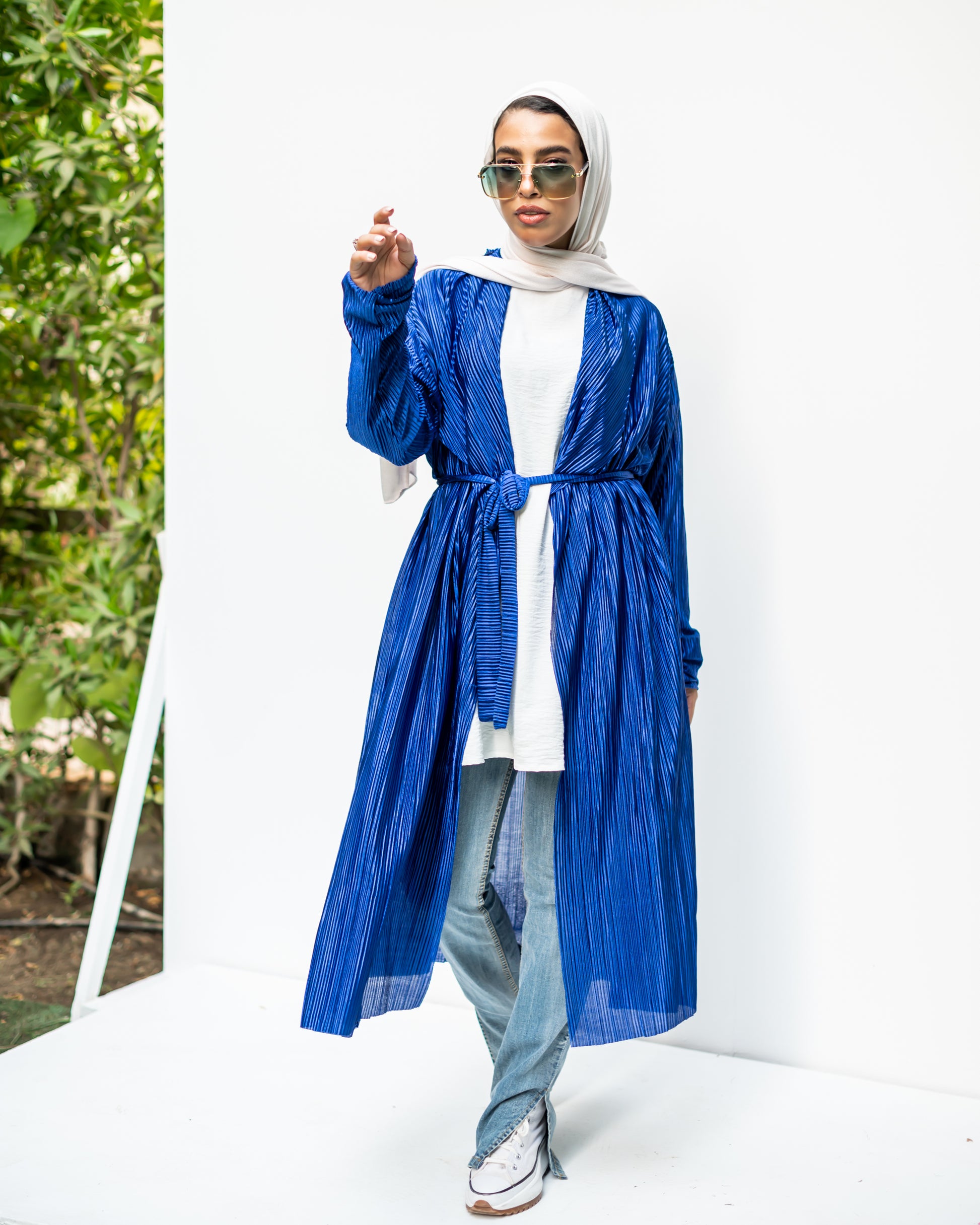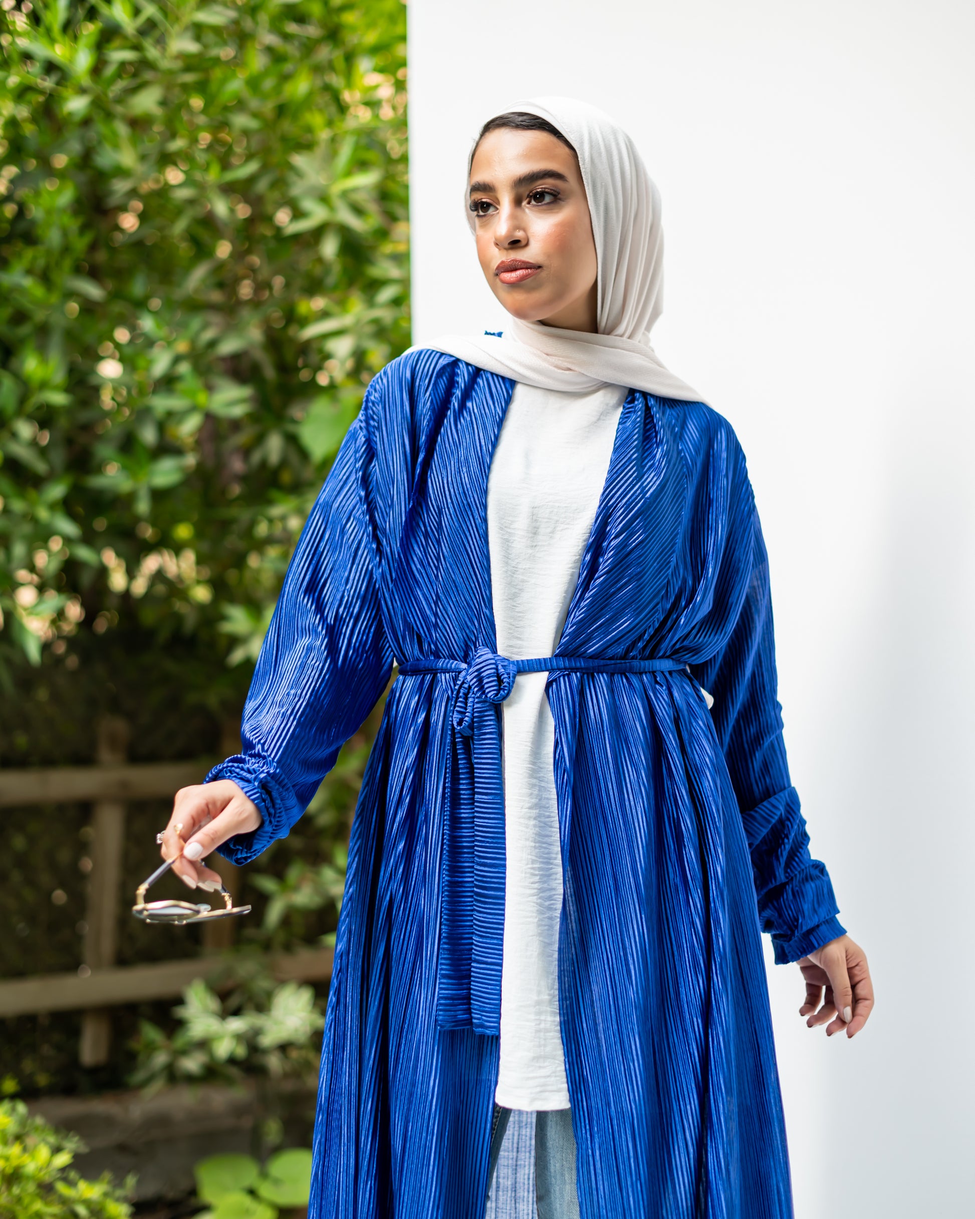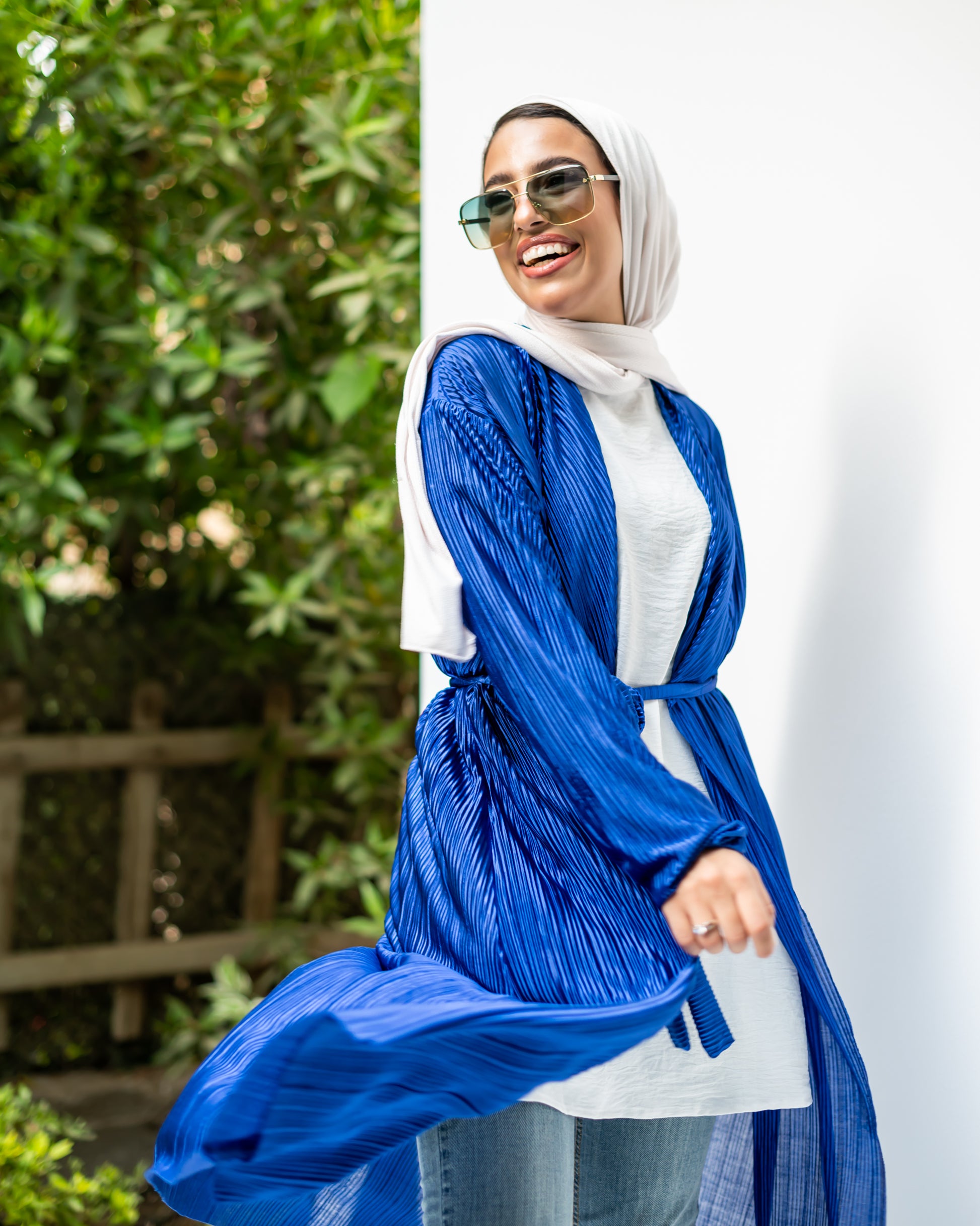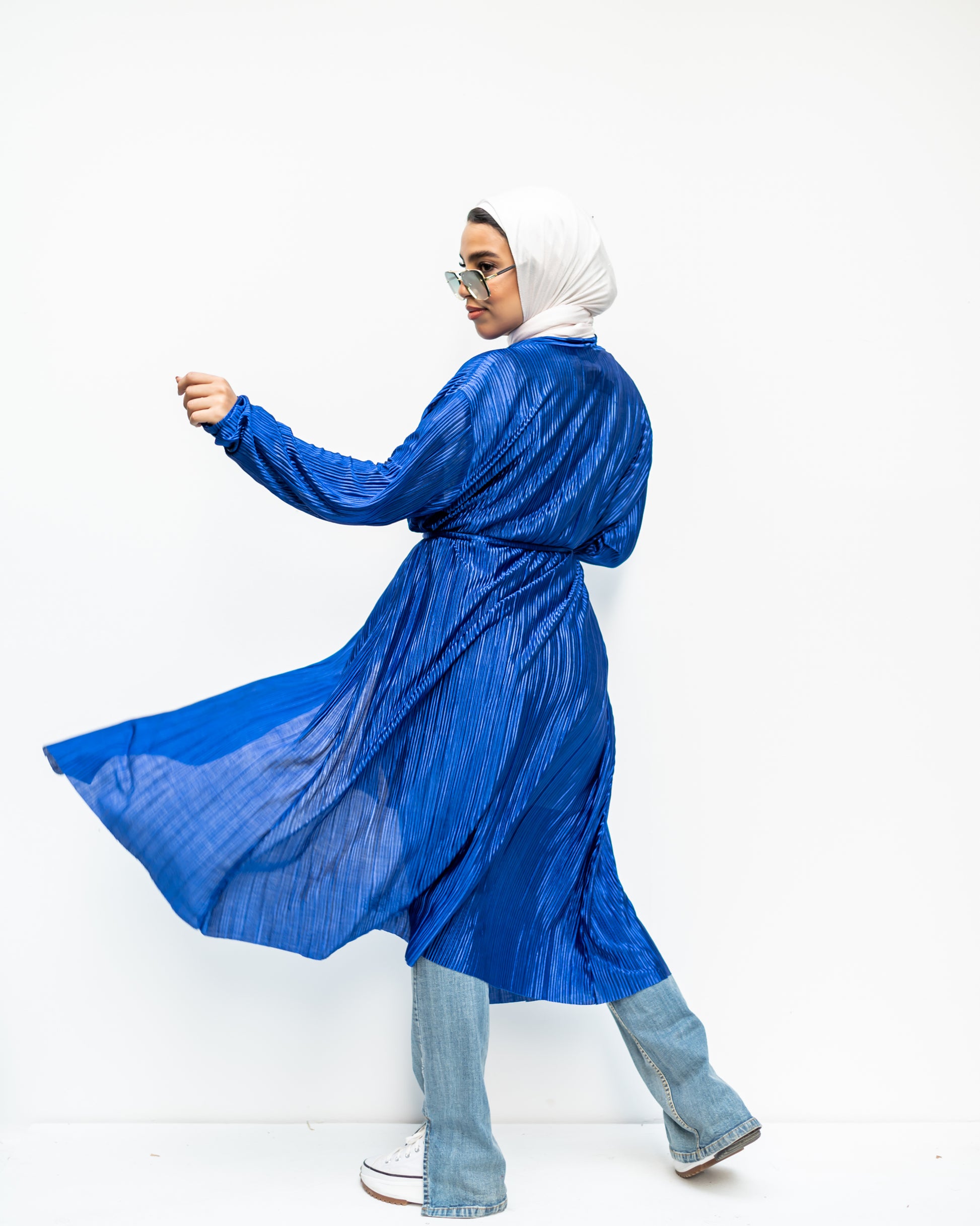 We're loving this textured, pleated cardigan in royal blue. Look super chic over any outfit for an effortless style update.