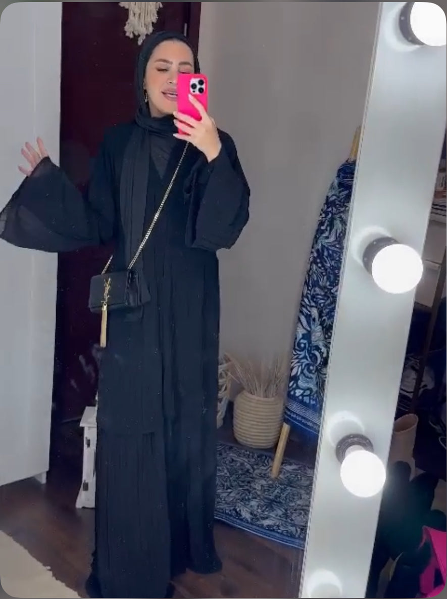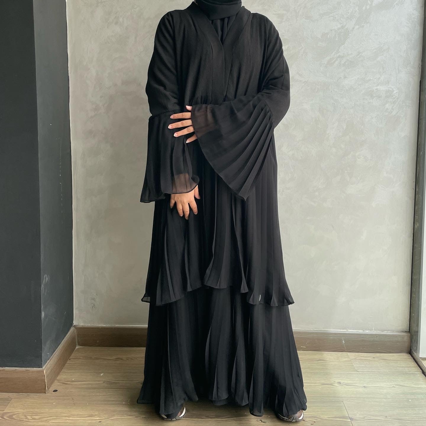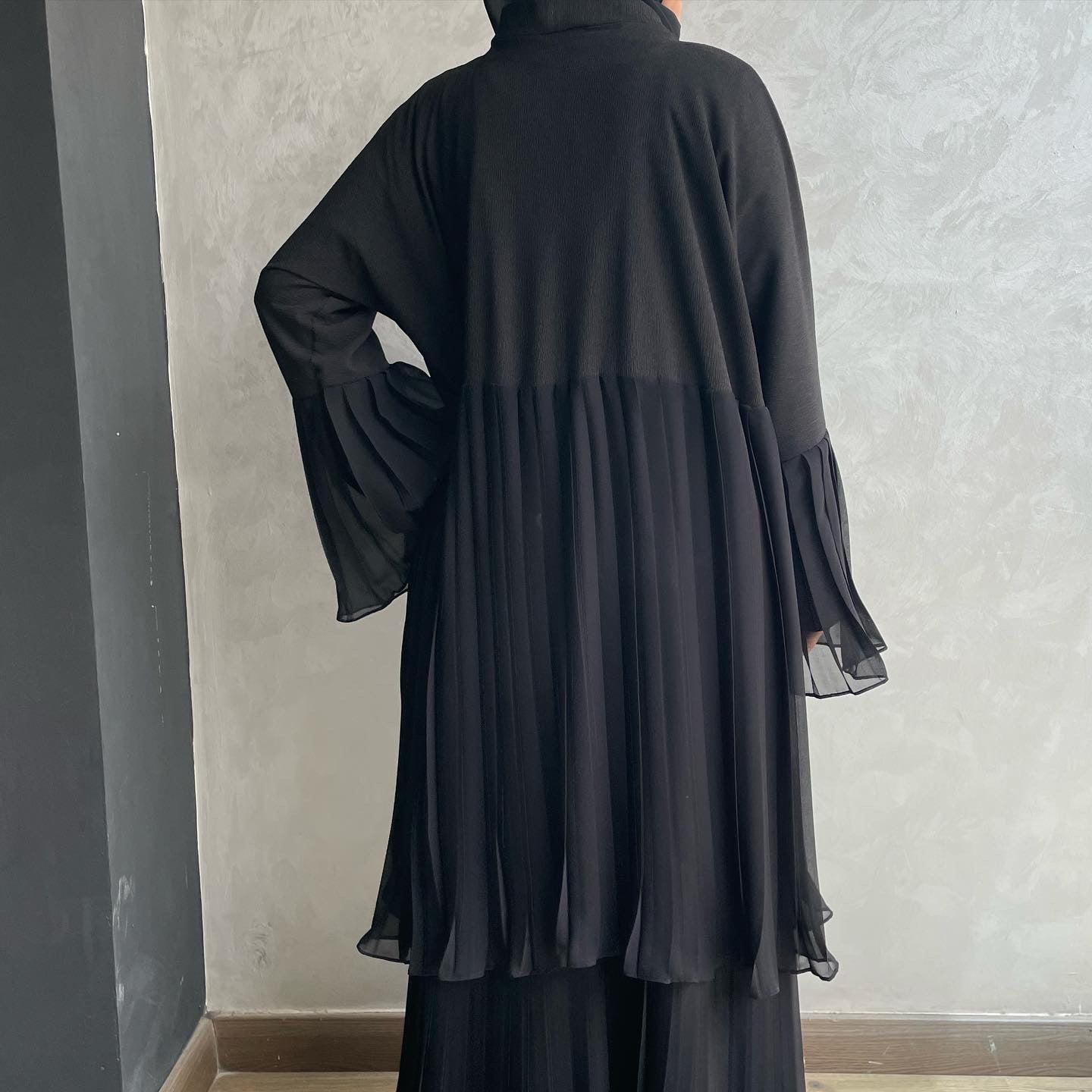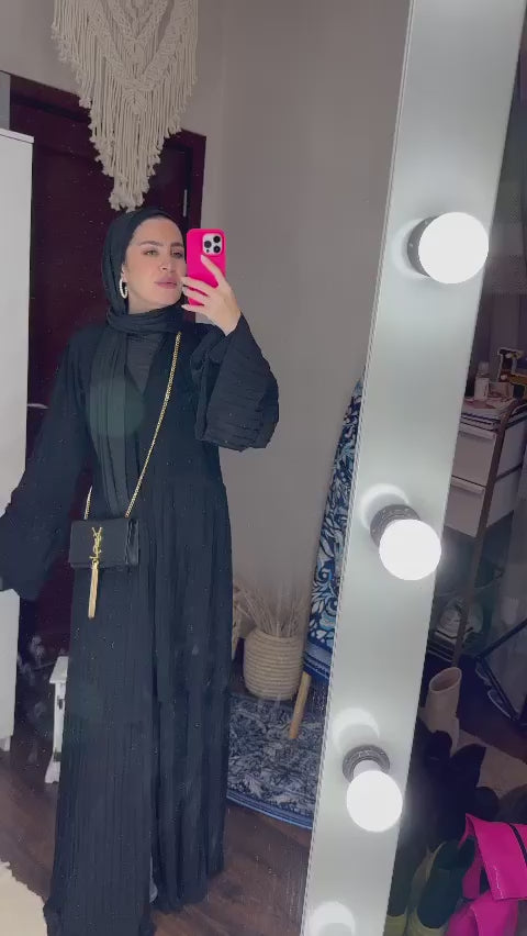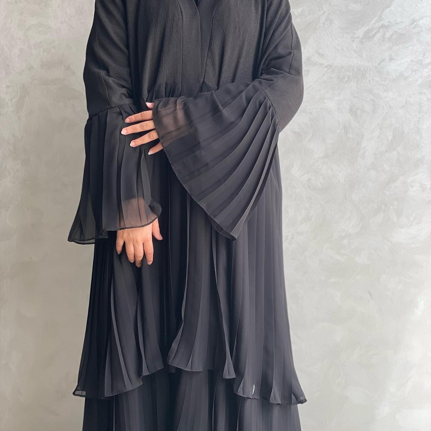 Very Dressy and Elegant Free Size Black Abaya with layers of plissee