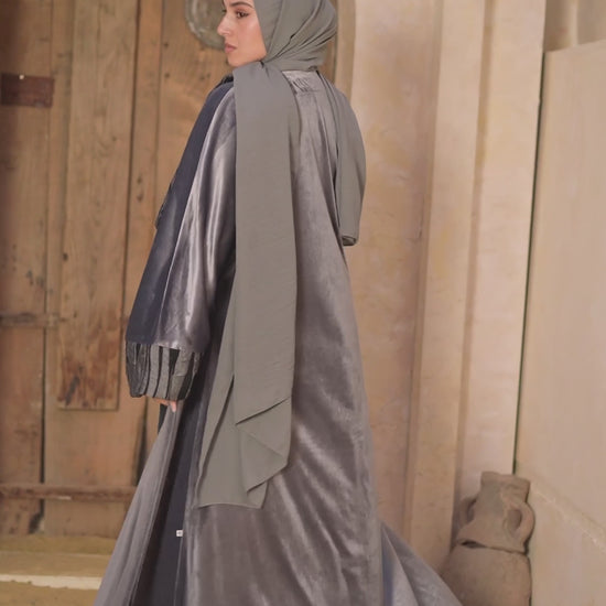 Designed for elegant winter styling, the Striped Velvet Open Abaya brings together soft shine, subtle detail, and effortless layering — perfect for Ramadan evenings.