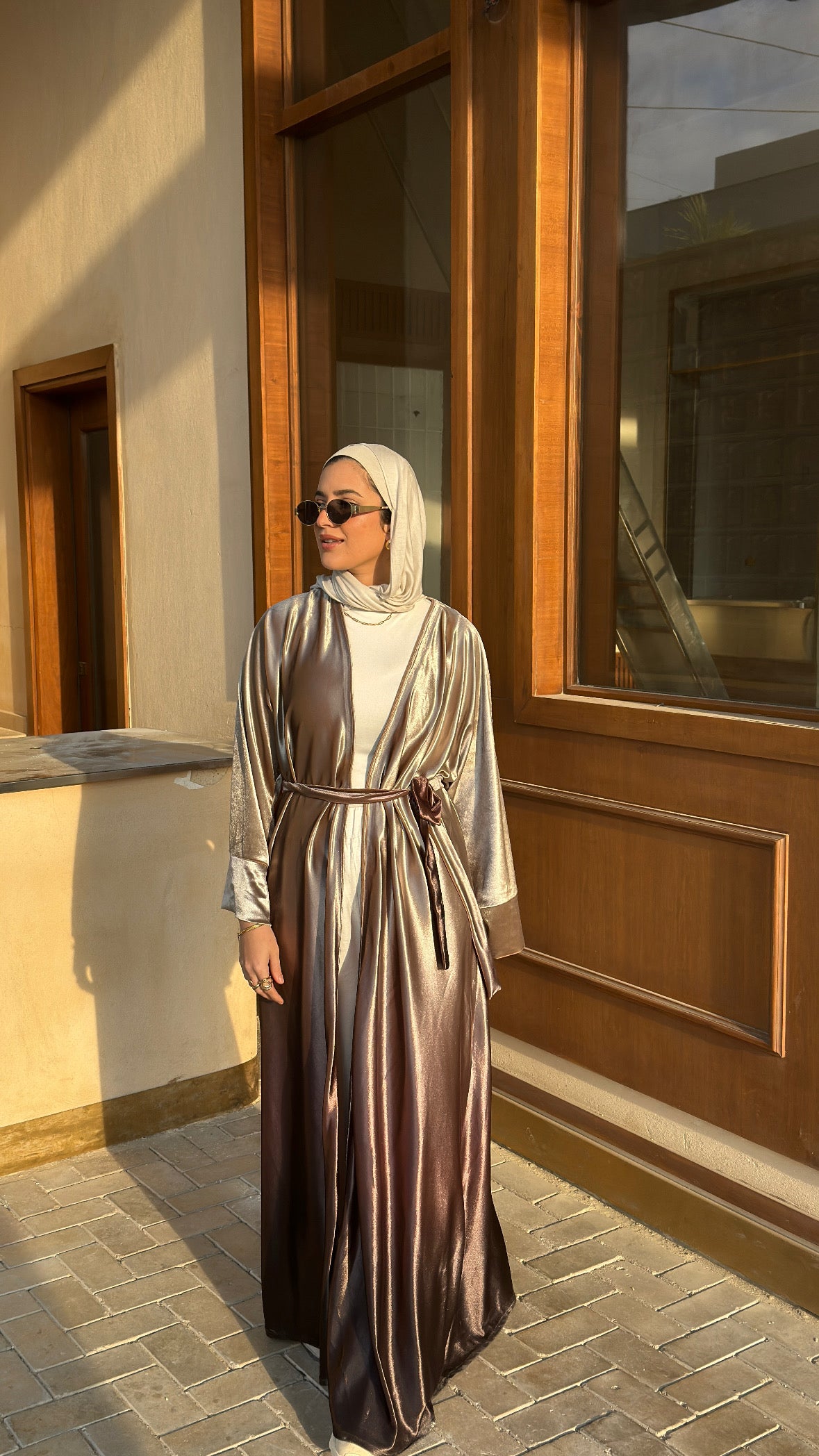Discover the luxurious comfort and sophisticated elegance of the Sunset velvet Kaftan, perfectly designed for Ramadan evenings. This exquisite piece transitions smoothly from a soft beige at the neckline down to a deep, earthy brown at the hem, capturing the serene essence of a sunset. Crafted from the finest velvet, Tje kaftan's loose silhouette is flattering for all body types, while the subtle gradient effect adds a touch of modern elegance to your Ramadan wardrobe.