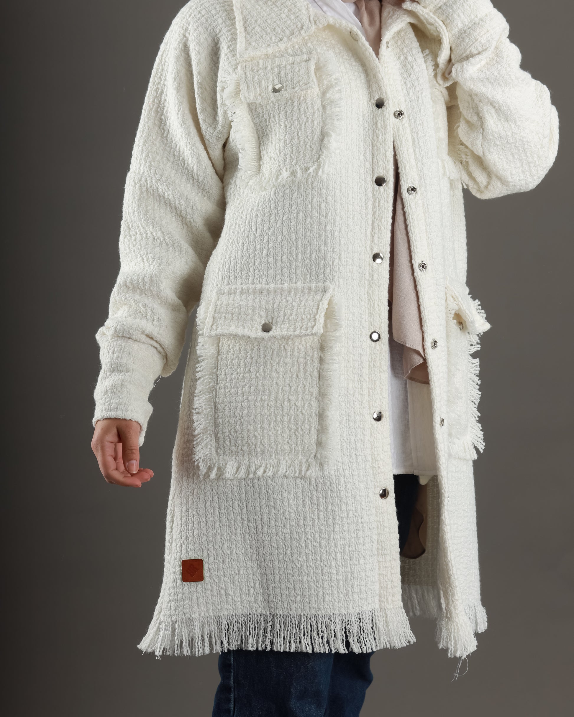 In tweed wool fabric this limited edition creates Luxury and warmth together in the form of a classic textured coat.