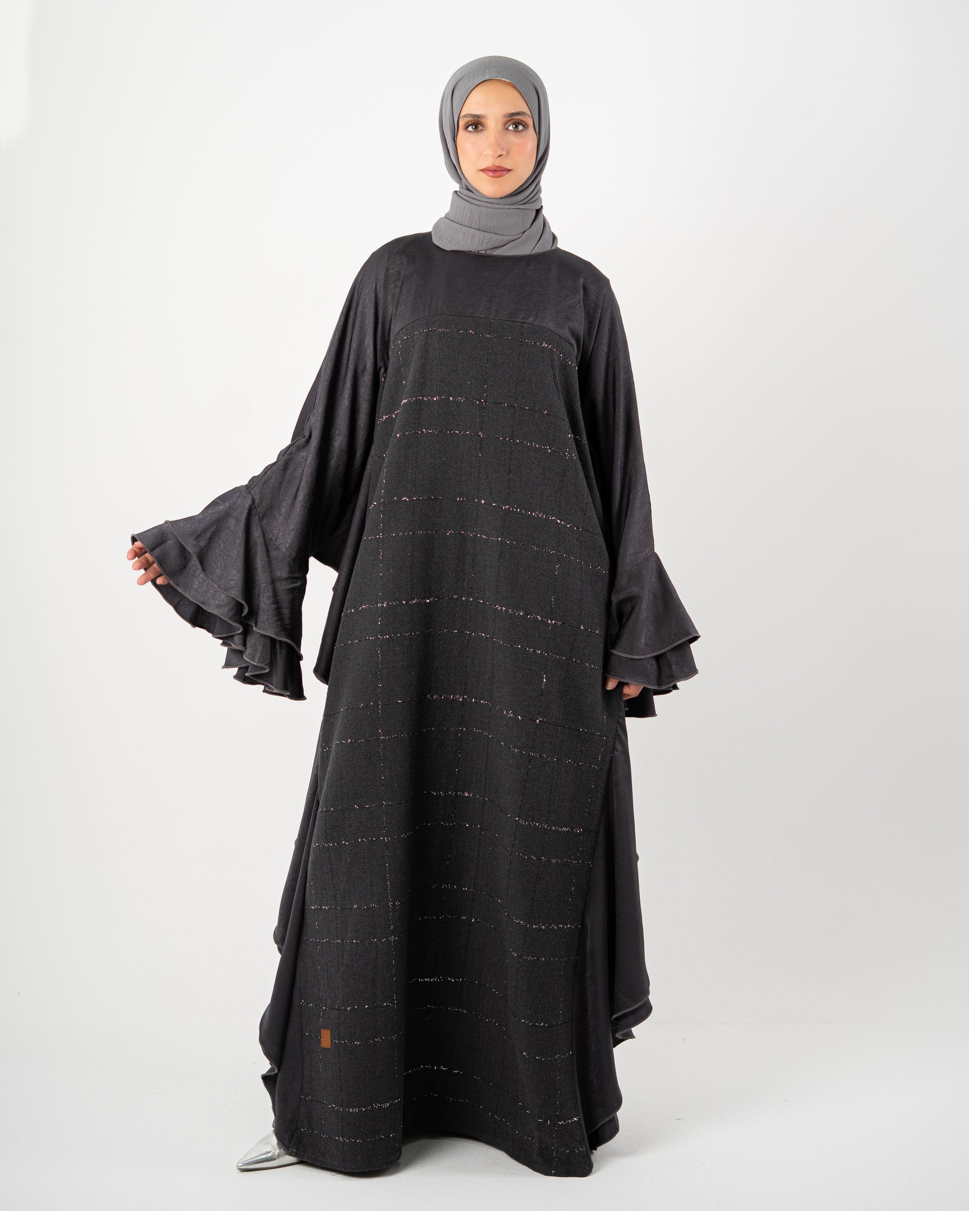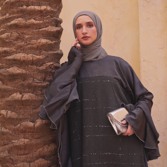 Crafted from a premium tweed fabric, this abaya offers structure and warmth while remaining soft and fluid on the body. The butterfly silhouette creates graceful movement with every step, giving you comfort without compromising on elegance.