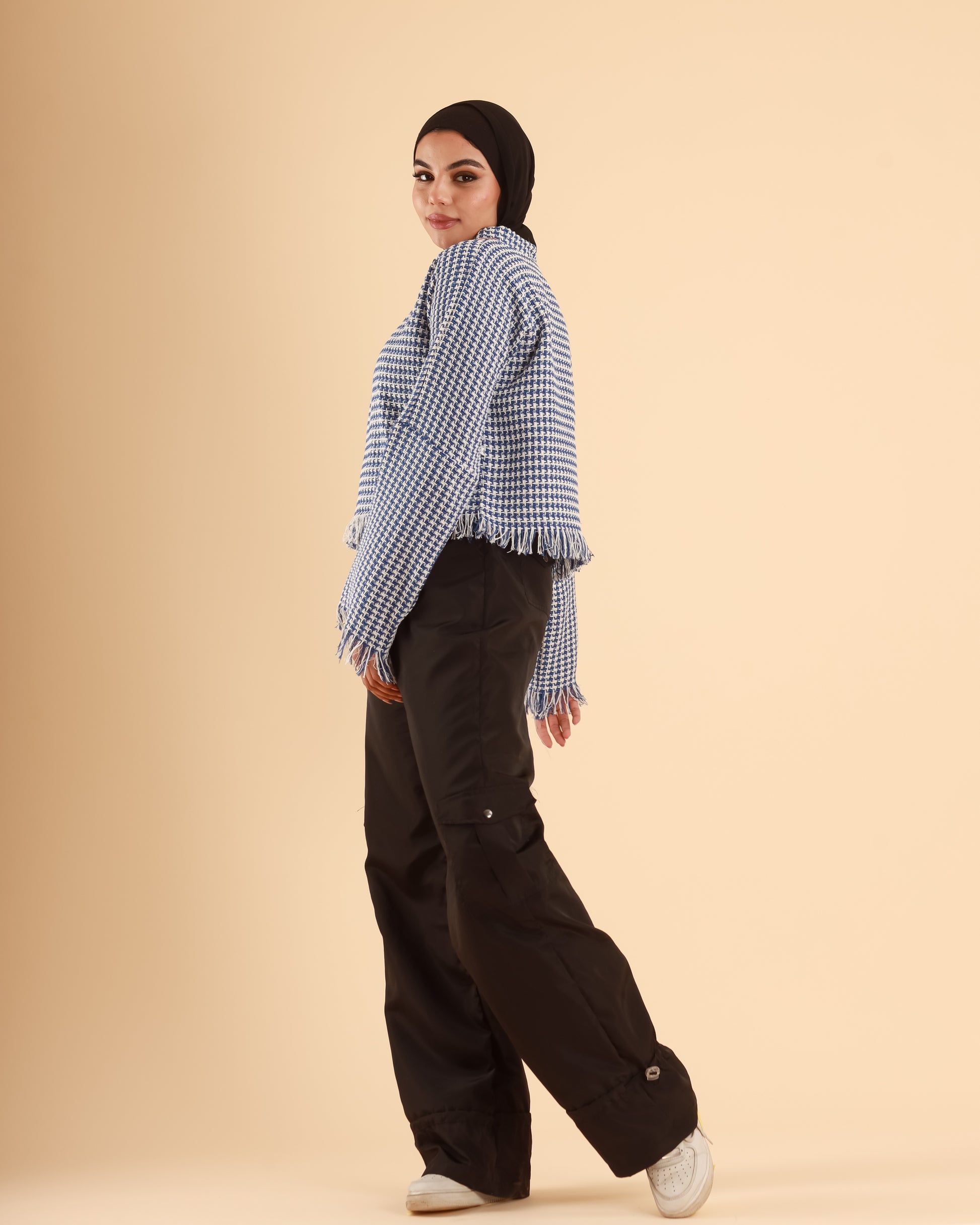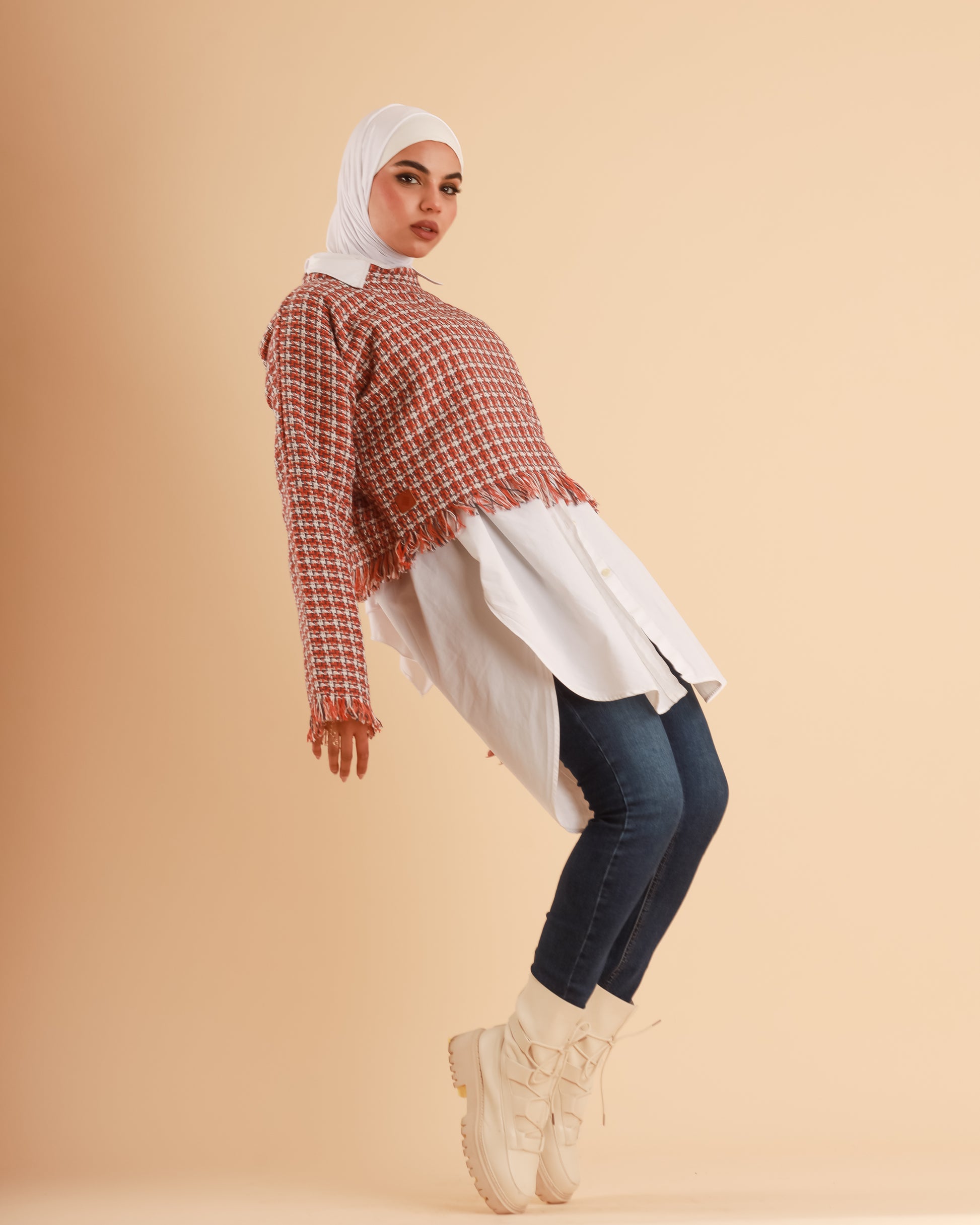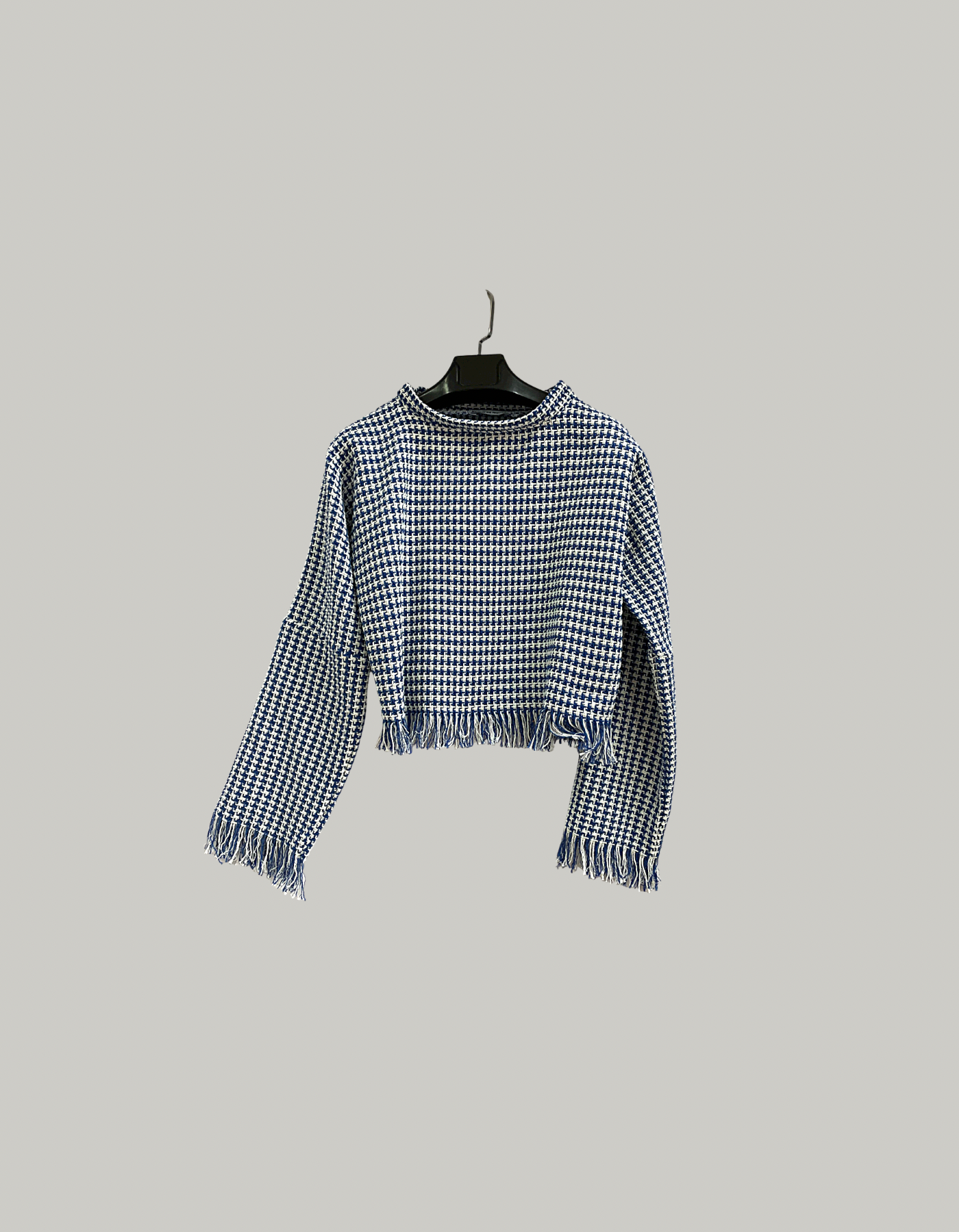 A classic sweater woven in tweed material. The oversized design Offers a slouchy fit, with fringes. Perfect for any occasion or mood. 50cm length
